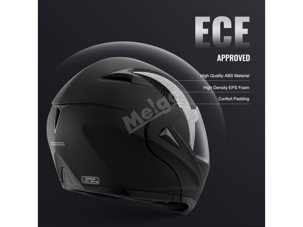 Táto motocyklová prilba je schválená ECE a poskytuje vysoký štandard bezpečnosti pri vašich jazdách. Prilba má výhody, ako je odolnosť proti nárazu, odolnosť proti prieniku a úchytky, ktoré sa len tak ľahko neodstrihnú, čo jazdcom zaručuje pokoj pri každom výlete.