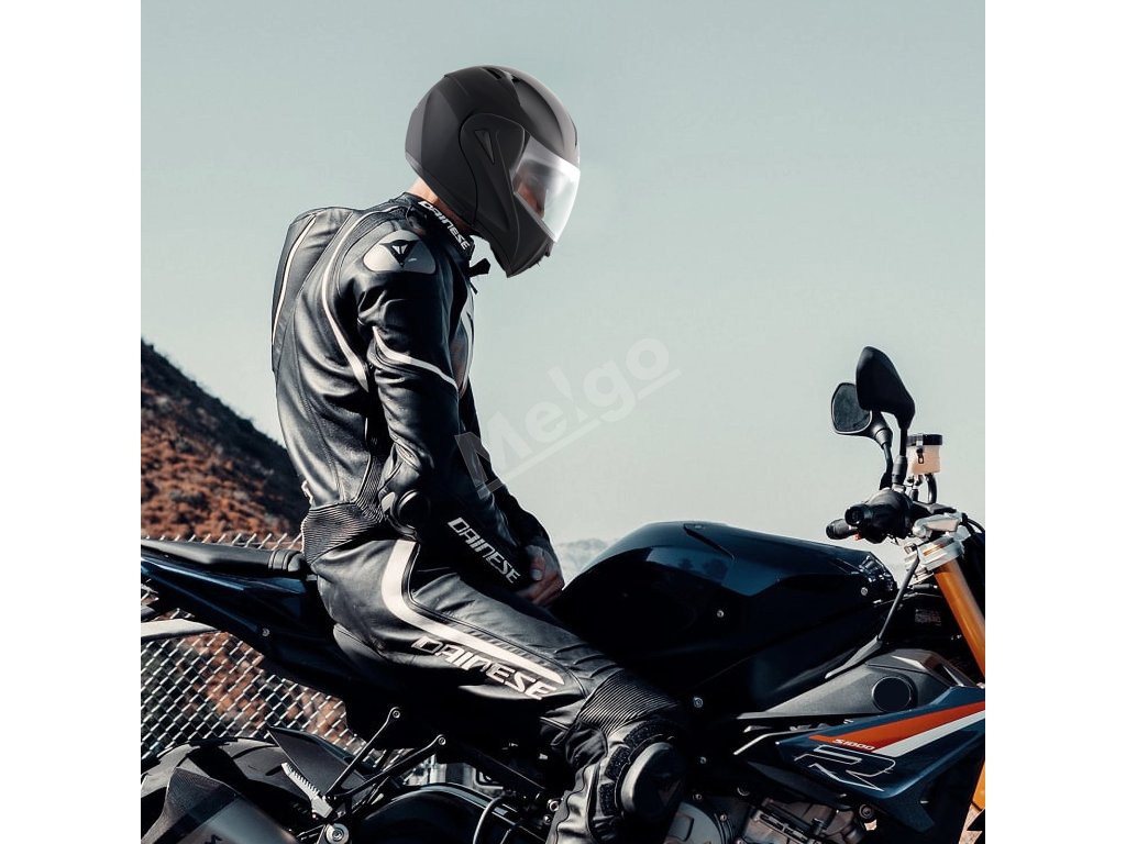 Aerodynamicky optimalizovaný tvar motocyklovej prilby výrazne zamedzuje odporu vetra a hluku, čím zabezpečuje, že jazdec je schopný jasne vnímať svoje okolie, a tým zaručuje včasnú reakciu a bezpečnú jazdu.