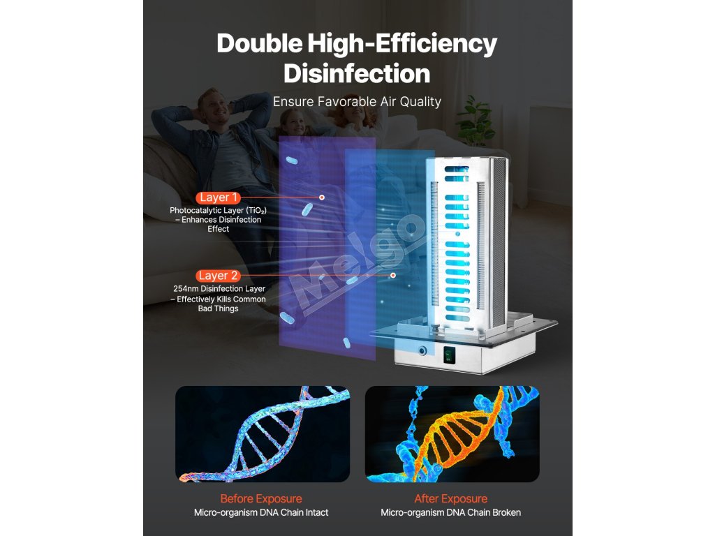 Vďaka veľkej účinnej čistiacej ploche a dlhej životnosti trubice lampy spĺňa požiadavky nepretržitého používania. Na maximalizáciu životnosti sa odporúča vyhýbať sa častým cyklom zapnutia/vypnutia zariadenia.