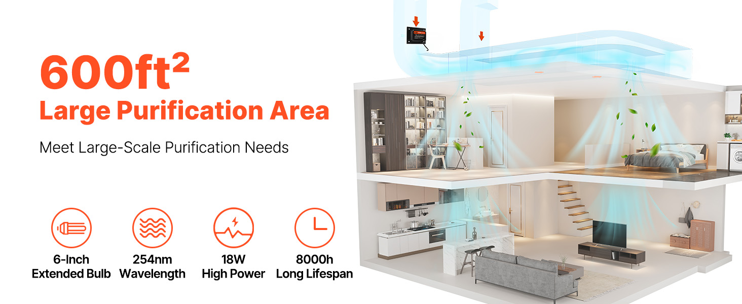 Náš čistič vzduchotechnických kanálov má vysoký výkon, ktorý účinne zlepšuje kvalitu vzduchu. Trubica lampy má predĺženú životnosť, čo zaručuje dlhodobé používanie. Dodáva sa s kompletným príslušenstvom na jednoduchú inštaláciu a rýchle nastavenie.