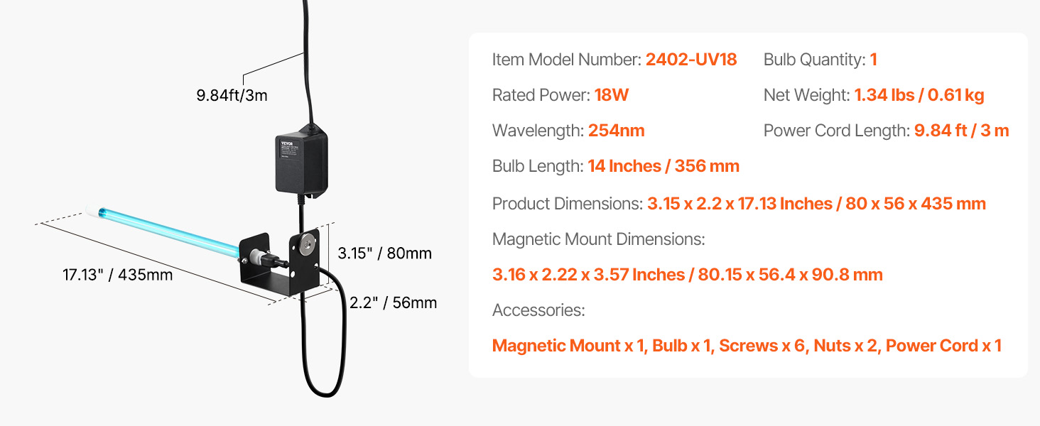 | Dĺžka žiarovky | 14 palcov / 356 mm |