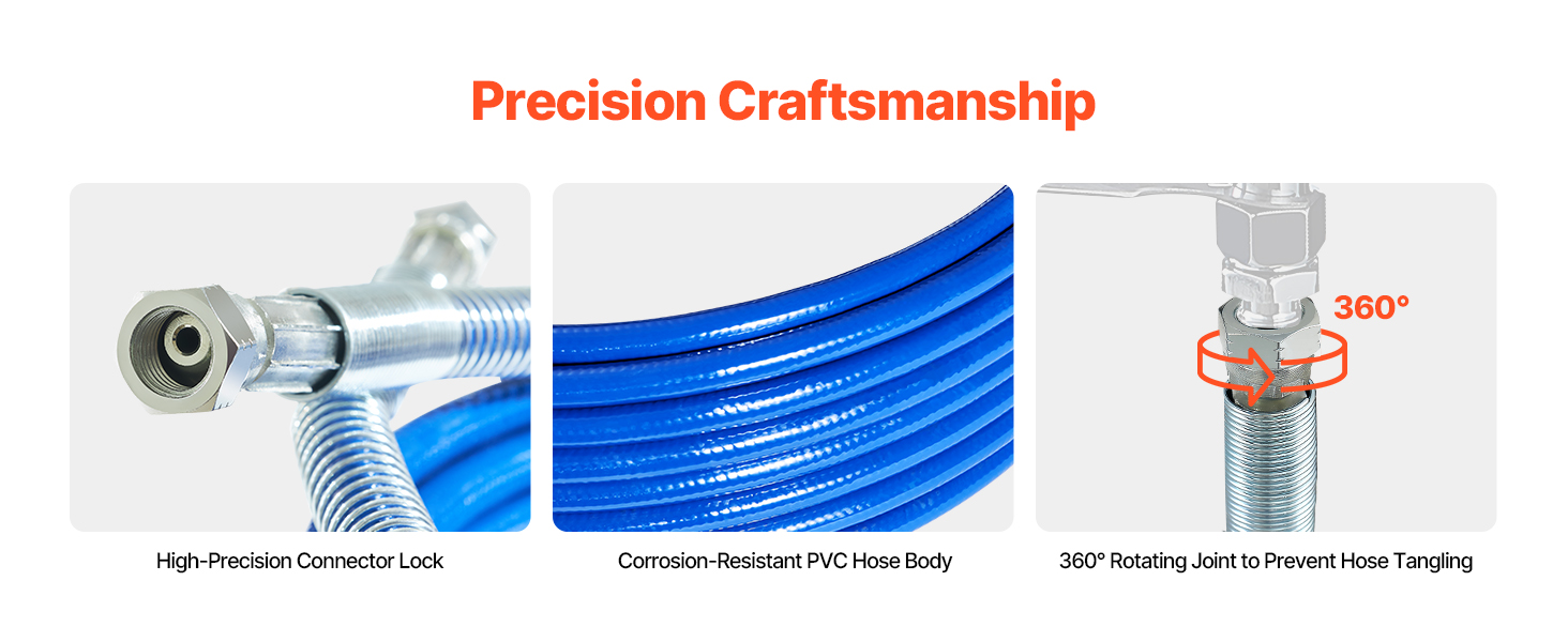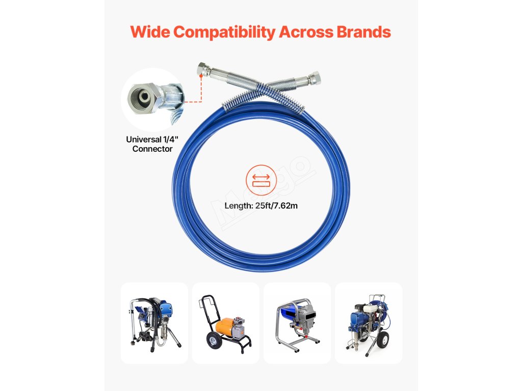 Túto hadicu na rozprašovač farby je možné používať s mnohými rôznymi značkami a modelmi zariadení. Či už ide o striekaciu pištoľ, vodné čerpadlo, vzduchový kompresor alebo iné zariadenia na prenos kvapaliny, poskytuje jednoduchú kompatibilitu.