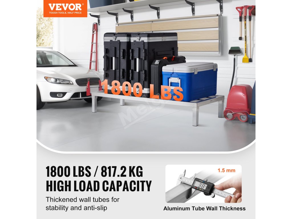 Tento hliníkový úložný regál unesie až 1800 lbs / 817,2 kg! Je skonštruovaný odolne, aby zvládol ťažké zaťaženie bez ohýbania alebo deformácie. Má dlhú životnosť a je spoľahlivý, takže môžete bez obáv skladovať.