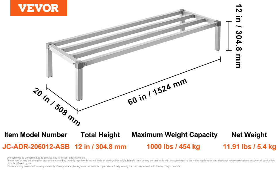 Tento hliníkový úložný regál unesie až 1000 lbs / 454 kg! Je skonštruovaný odolne, aby zvládol ťažké zaťaženie bez ohýbania alebo deformácie. Má dlhú životnosť a je spoľahlivý, takže môžete bez obáv skladovať.