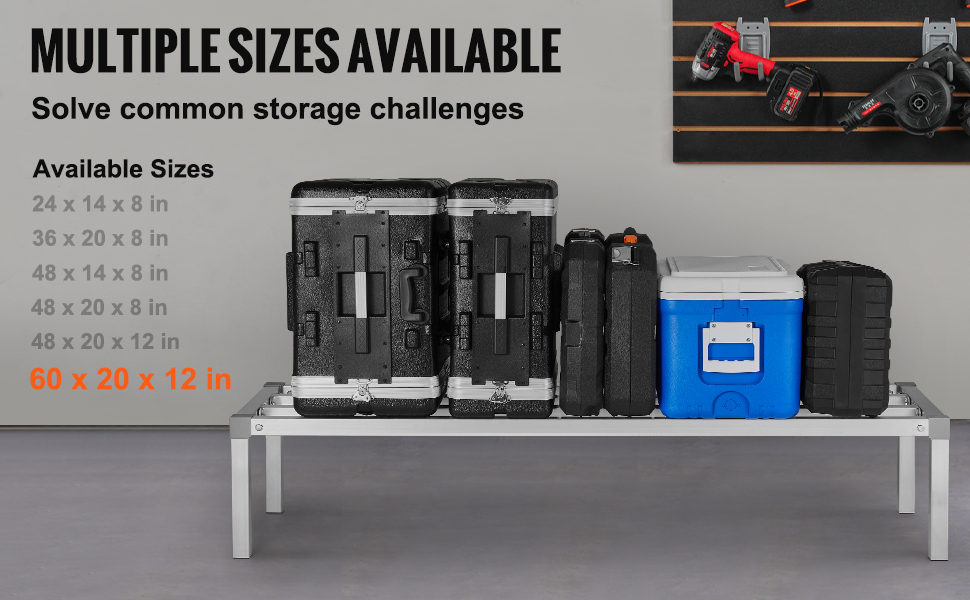 Hliníkový podlahový regál 60”×20”, 12” od zeme, 1000 lbs zváraný