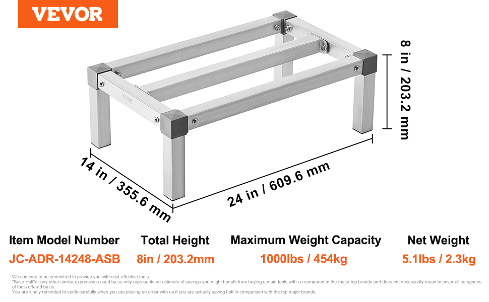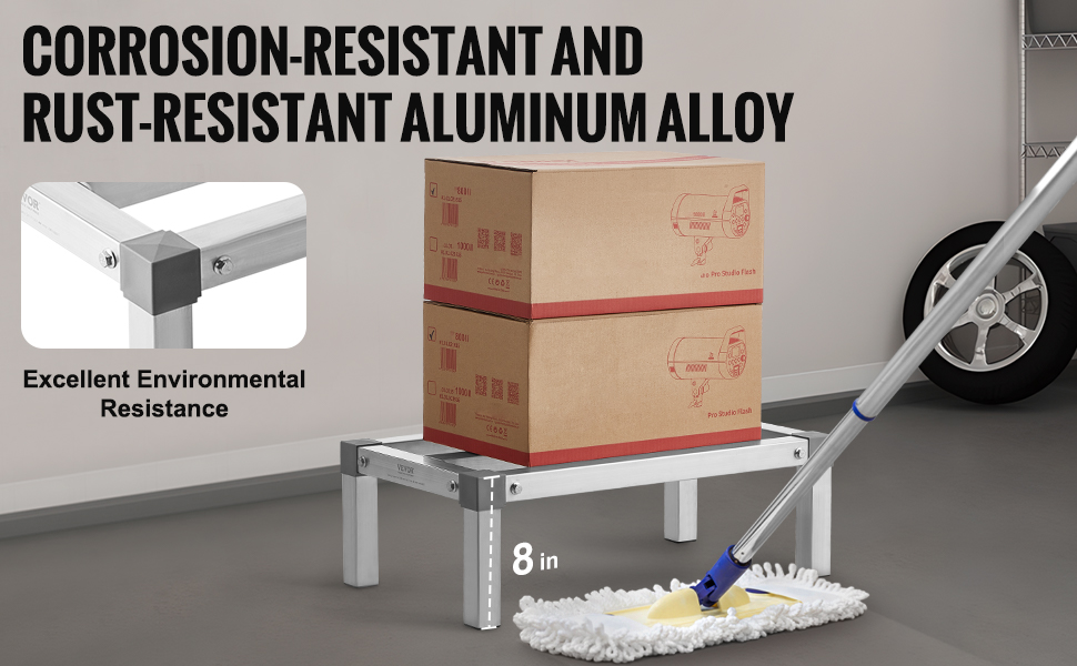Tento hliníkový úložný regál unesie až 1000 lbs / 454 kg! Je skonštruovaný odolne, aby zvládol ťažké zaťaženie bez ohýbania alebo deformácie. Má dlhú životnosť a je spoľahlivý, takže môžete bez obáv skladovať.