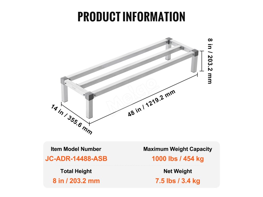 Tento hliníkový úložný regál unesie až 1000 lbs / 454 kg! Je skonštruovaný odolne, aby zvládol ťažké zaťaženie bez ohýbania alebo deformácie. Má dlhú životnosť a je spoľahlivý, takže môžete bez obáv skladovať.