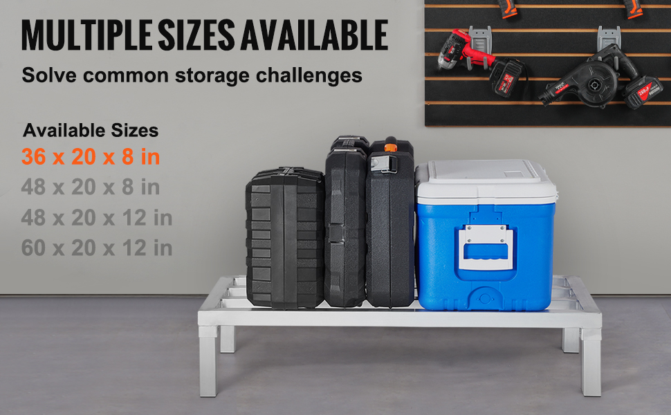 Hliníkový regál na skladovanie 36"×20", 8" nad zemou, nosnosť 1800 lbs