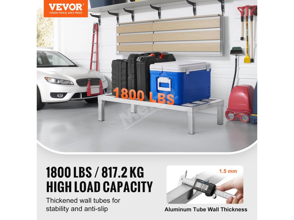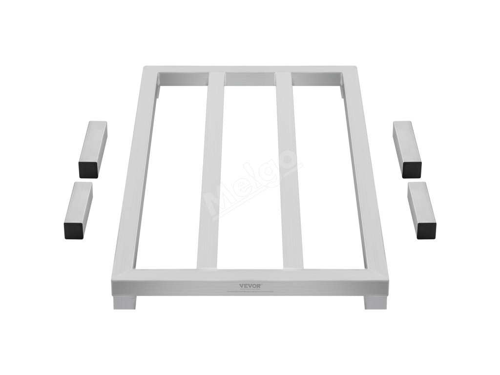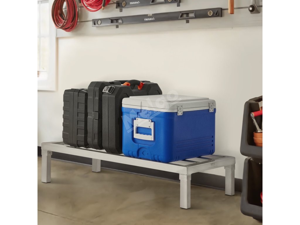 Hliníkový regál na skladovanie 36"×20", 8" nad zemou, nosnosť 1800 lbs