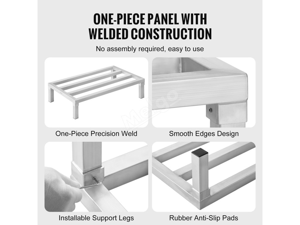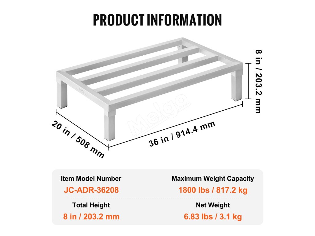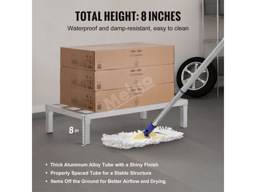 Tento hliníkový úložný regál unesie až 1800 lbs / 817,2 kg! Je skonštruovaný odolne, aby zvládol ťažké zaťaženie bez ohýbania alebo deformácie. Má dlhú životnosť a je spoľahlivý, takže môžete bez obáv skladovať.
