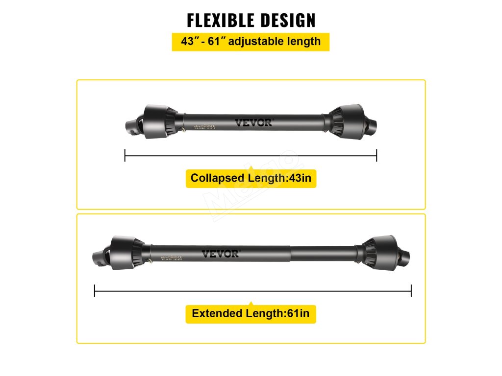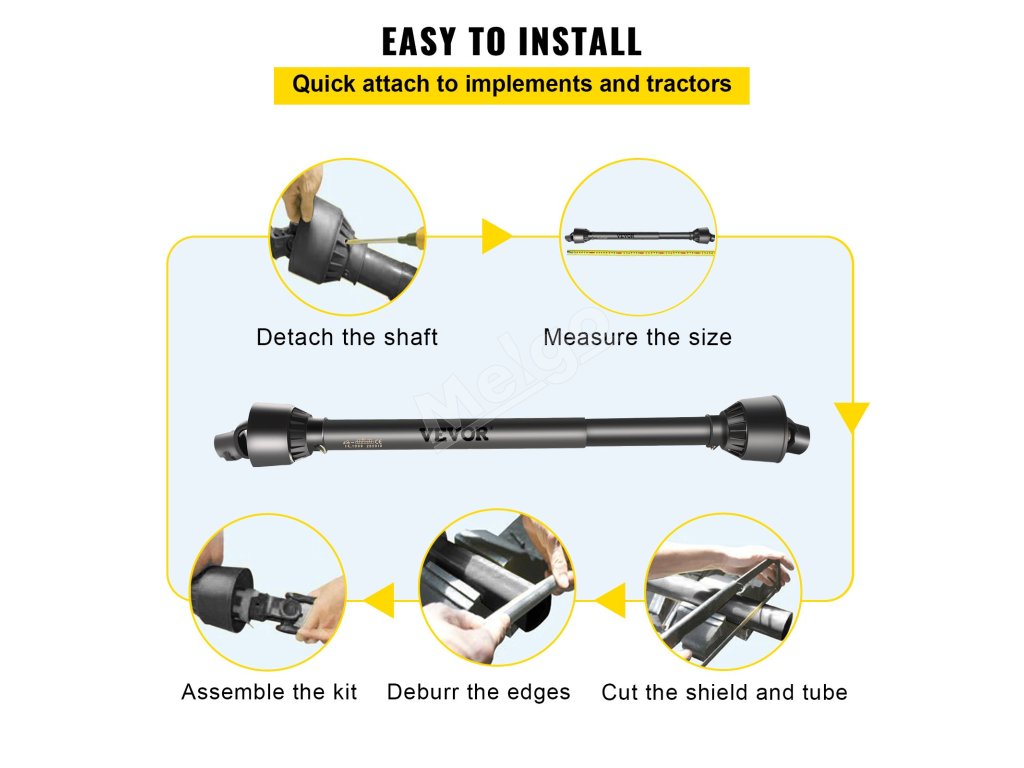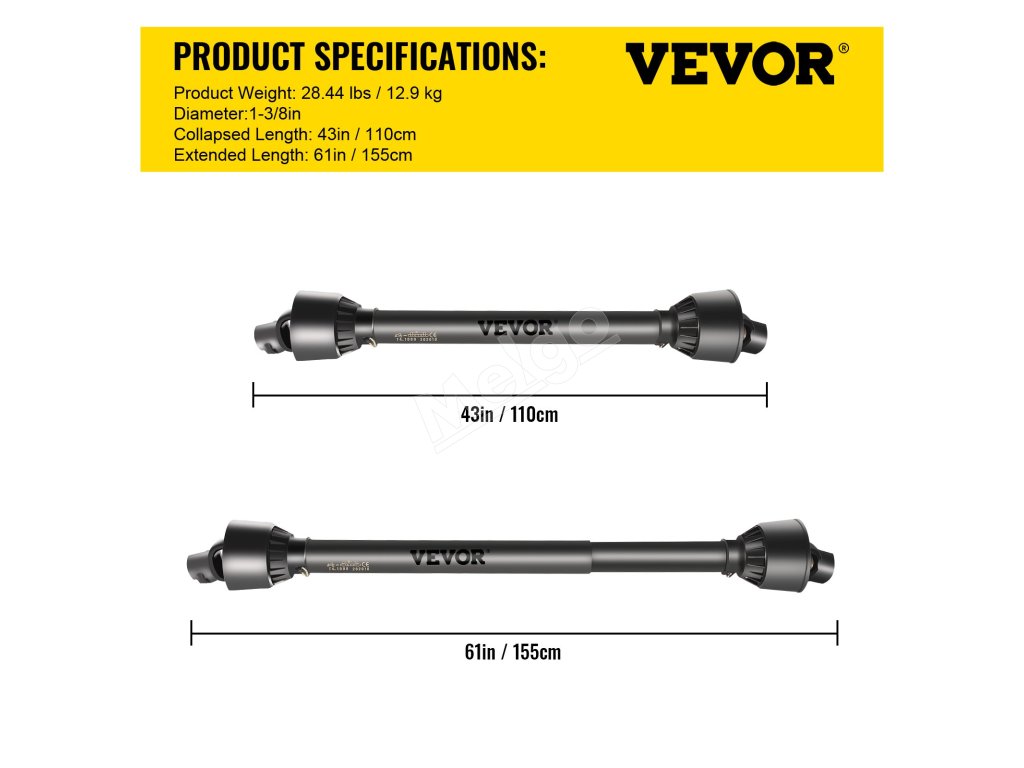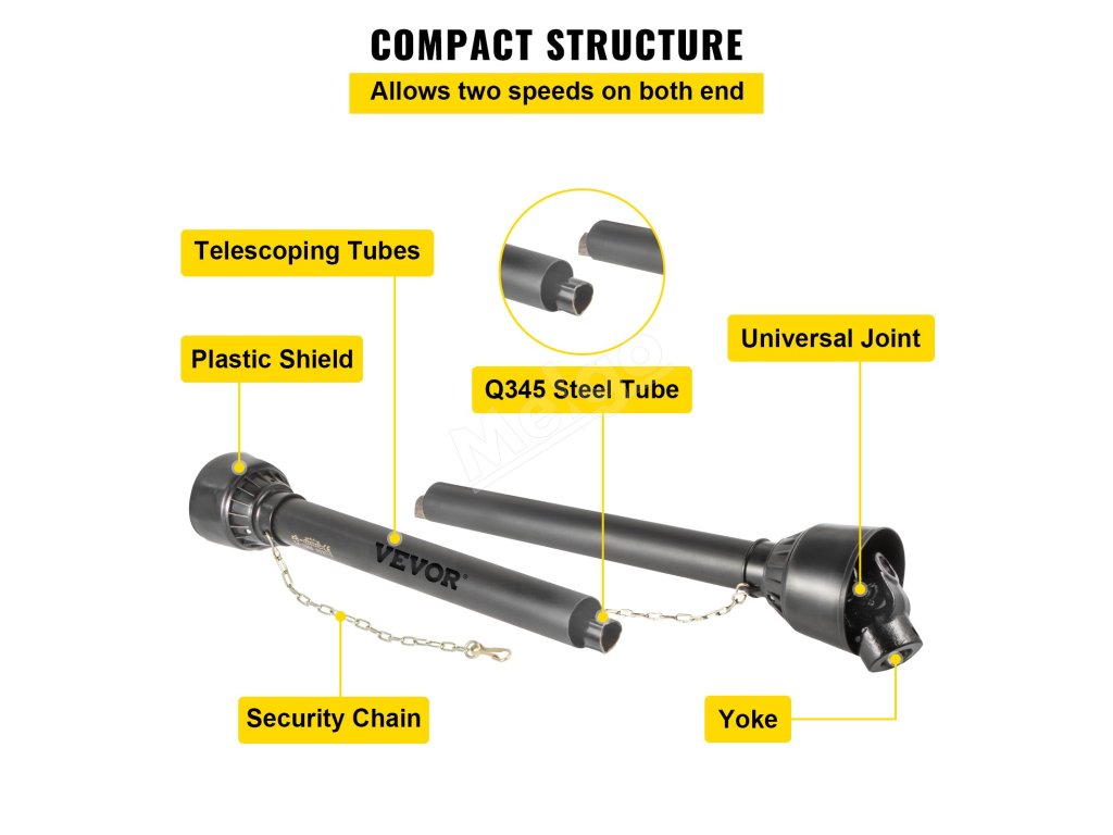 Má certifikát CE. Táto certifikácia zaručuje jeho bezpečnosť a súlad s normami. Spĺňa potrebné predpisy pre poľnohospodárske zariadenia. Používanie certifikovaného výrobku zaručuje pokojnú myseľ. Viete, že používanie hriadeľa je bezpečné. Zároveň je v súlade s právnymi požiadavkami. Táto certifikácia odzrkadľuje záväzok spoločnosti VEVOR v oblasti kvality. Kĺbový hriadeľ spoľahlivo funguje za všetkých podmienok. Certifikát CE pridáva ďalšiu vrstvu istoty, aby ste vy a vaše zariadenie boli v bezpečí. Používajte hriadeľ s dôverou vo svojich prevádzkach. Je to značka kvality a bezpečnosti.