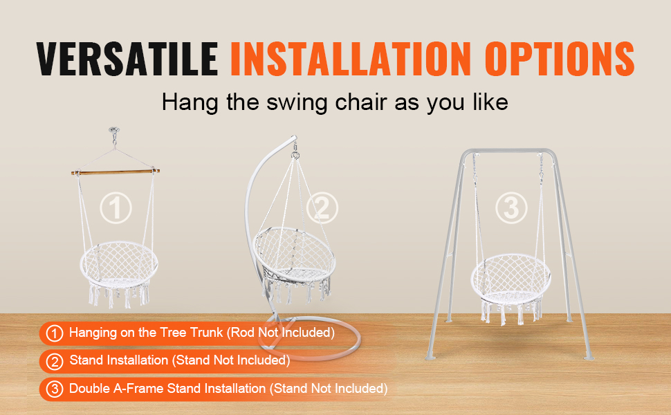 Závesné kreslo macrame je kompatibilné s rôznymi stojanmi, čo umožňuje inštaláciu "urob si sám" podľa vašich potrieb.