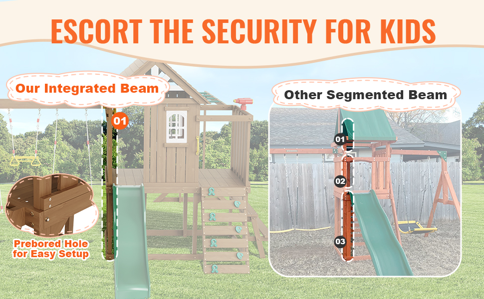 Vybavená vopred vyvŕtanými otvormi na jednoduché zostavenie. Upozorňujeme, že vonkajšia hracia súprava bude dodaná v 3baleniach. Oceňujeme vašu trpezlivosť pri čakaní na príchod všetkých komponentov na kompletnú inštaláciu.