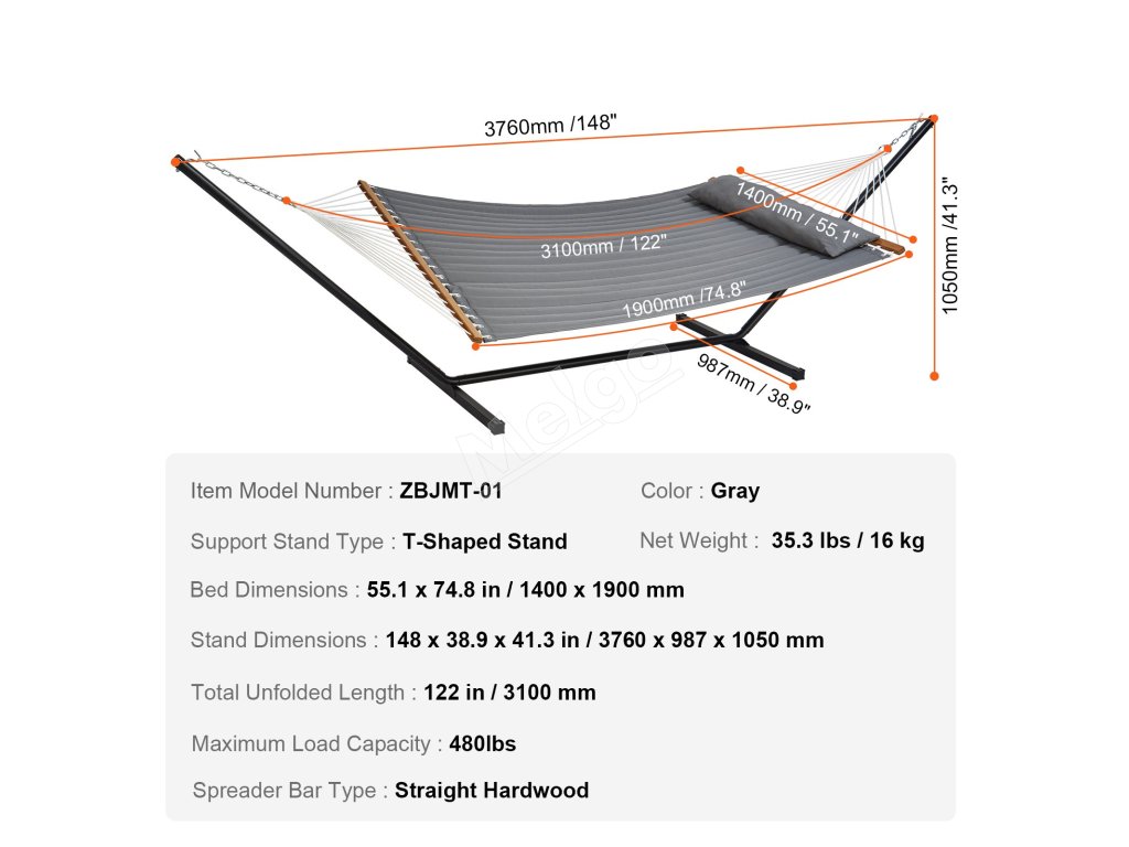 Zabezpečenie stability a bezpečnosti: Kovové krúžky, rybie chvostové uzly a dva 14-palcové pozinkované reťaze zabezpečujú váš relax, zatiaľ čo odnímateľný mäkký vankúš pridáva pohodlie. Kovové háčiky, práškovo lakovaný oceľový stojan a spodné ochranné kryty zabezpečujú odolnosť a pohodlie.