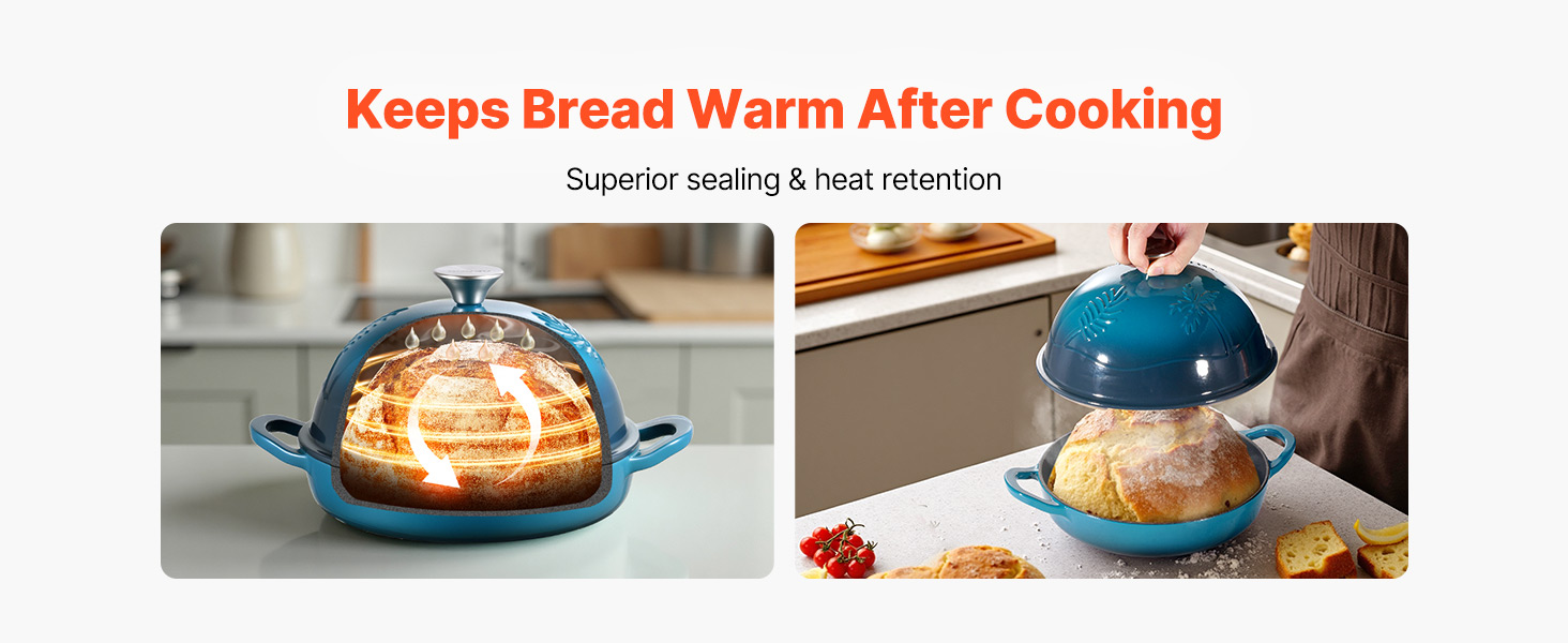 Pečte chutný chlieb na viac porcií v jednej liatinovej hrncovej peci. Dostatočný vnútorný priestor umožňuje cesto plne nakysnúť a rozvinúť sa. Či už na spoločné raňajky alebo rodinnú oslavu, vytvorí nezabudnuteľné spomienky!