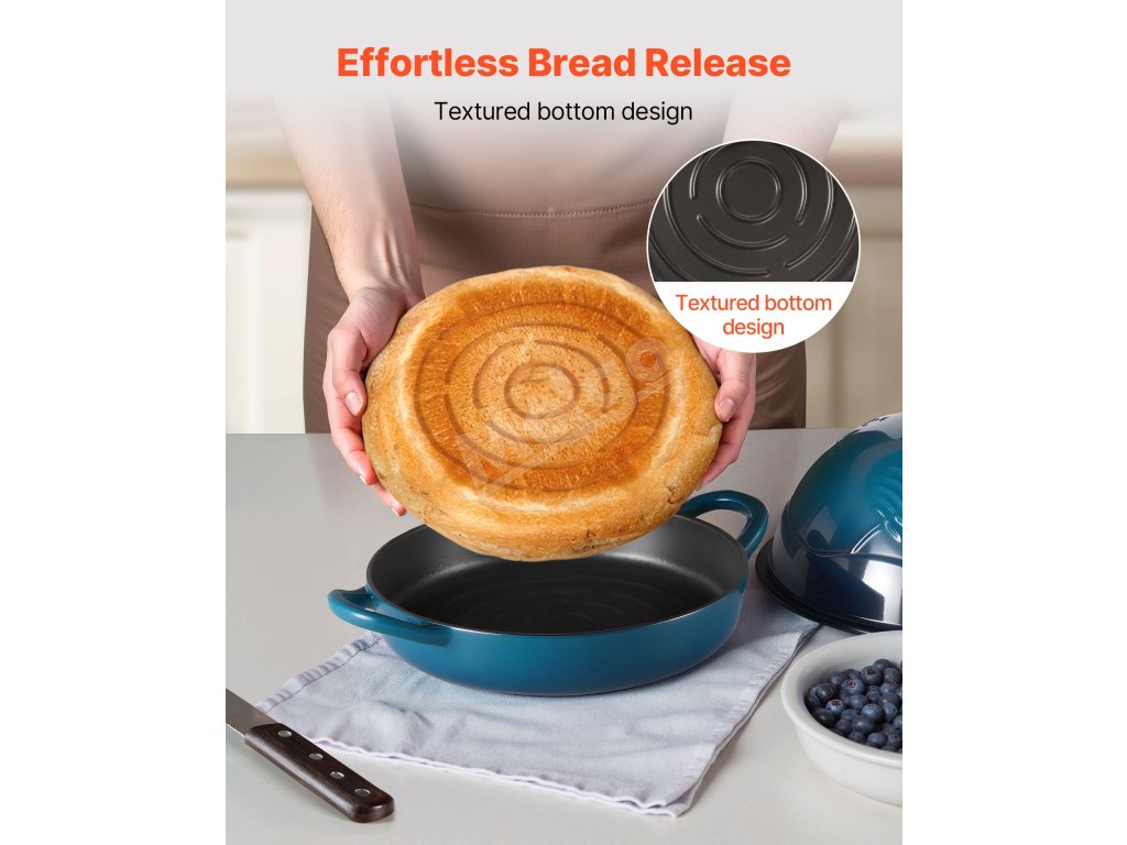 Pečte chutný chlieb na viac porcií v jednej liatinovej hrncovej peci. Dostatočný vnútorný priestor umožňuje cesto plne nakysnúť a rozvinúť sa. Či už na spoločné raňajky alebo rodinnú oslavu, vytvorí nezabudnuteľné spomienky!