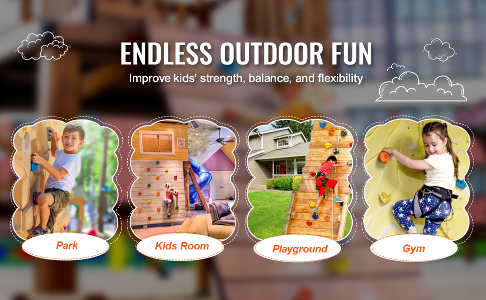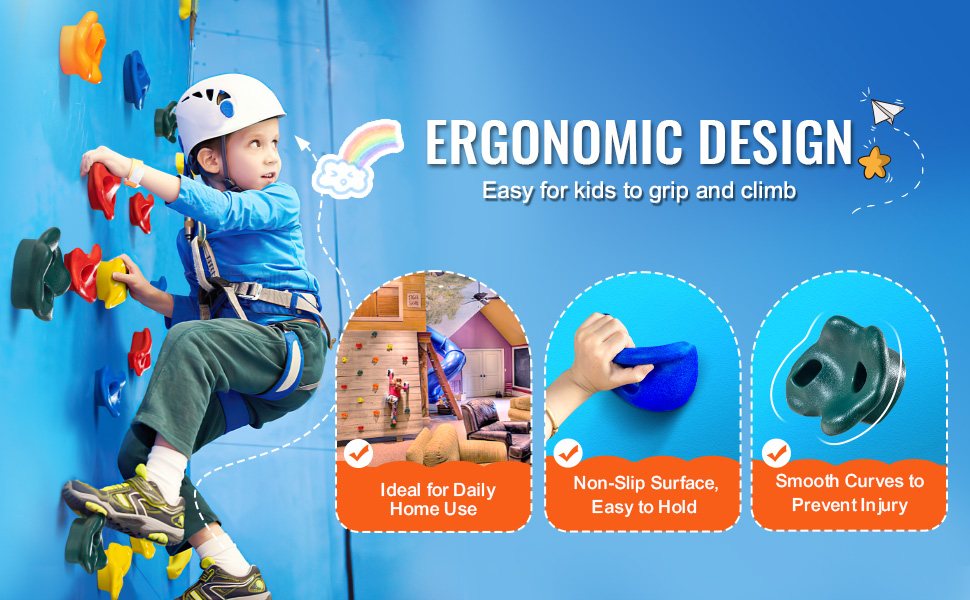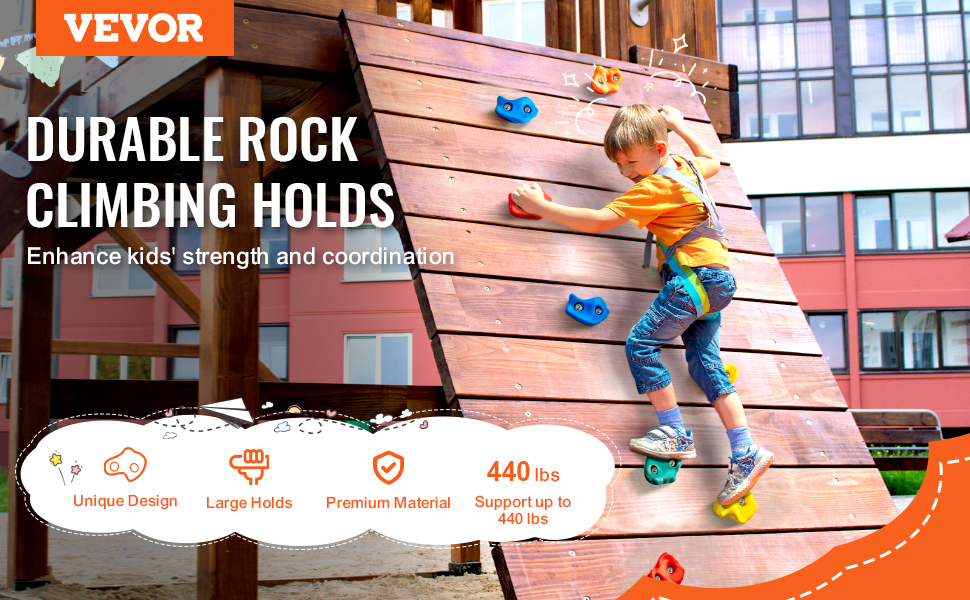 Tieto krkolomné lezecké chyty pre deti možno pripevniť k akejkoľvek vonkajšej hracej súprave alebo stabilnej doske, takže sú ideálne do detských izieb a na vonkajšie ihriská. Podporujú hru v interiéri aj exteriéri, udržiavajú deti ďaleko od obrazoviek a podporujú lásku k vonkajším aktivitám.