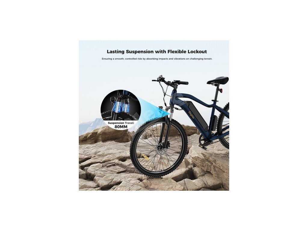 Elektrobicykel Mopride 3 je stvorený pre dobrodružstvo, má atletický rám a horské pneumatiky 29”×2,4” špeciálne navrhnuté pre horské chodníky a náročné terény, ktoré poskytujú dynamický a vzrušujúci zážitok z jazdy. Okrem toho je bicykel vybavený odpružením so zdvihom 80 mm a uzamykaním, ktoré je navrhnuté tak, aby pohlcovalo nárazy a zlepšovalo stabilitu prednej časti bicykla a poskytovalo optimálnu efektivitu jazdy vo všetkých typoch terénu. Bicykel je doplnený 29-palcovými kolesami, ktoré sa dokonale hodia pre jazdcov vyšších ako 175 cm (5’8”) a ponúkajú pohodlnú a kontrolovanú jazdu, ktorá sa bez problémov prispôsobí konštrukcii bicykla aj potrebám používateľa.