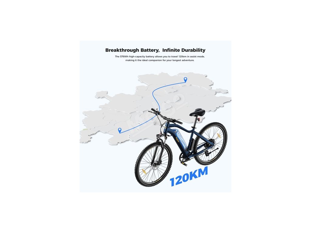 Elektrobicykel je vybavený vysokokapacitnou 576Wh batériou, ktorá poskytuje pôsobivý dojazd viac ako 100 km na jedno nabitie—ideálny na výpravy na dlhé vzdialenosti. Odnímateľná konštrukcia batérie zaručuje bezproblémové nabíjanie, vďaka čomu budú vaše jazdy neprerušované a pripravené na akciu. Pre ešte väčšie dobrodružstvá je možné dokúpiť ďalšiu batériu, ktorá predĺži váš dojazd a umožní vám bez obmedzení prekonávať ďalšie vzdialenosti a objavovať viac.