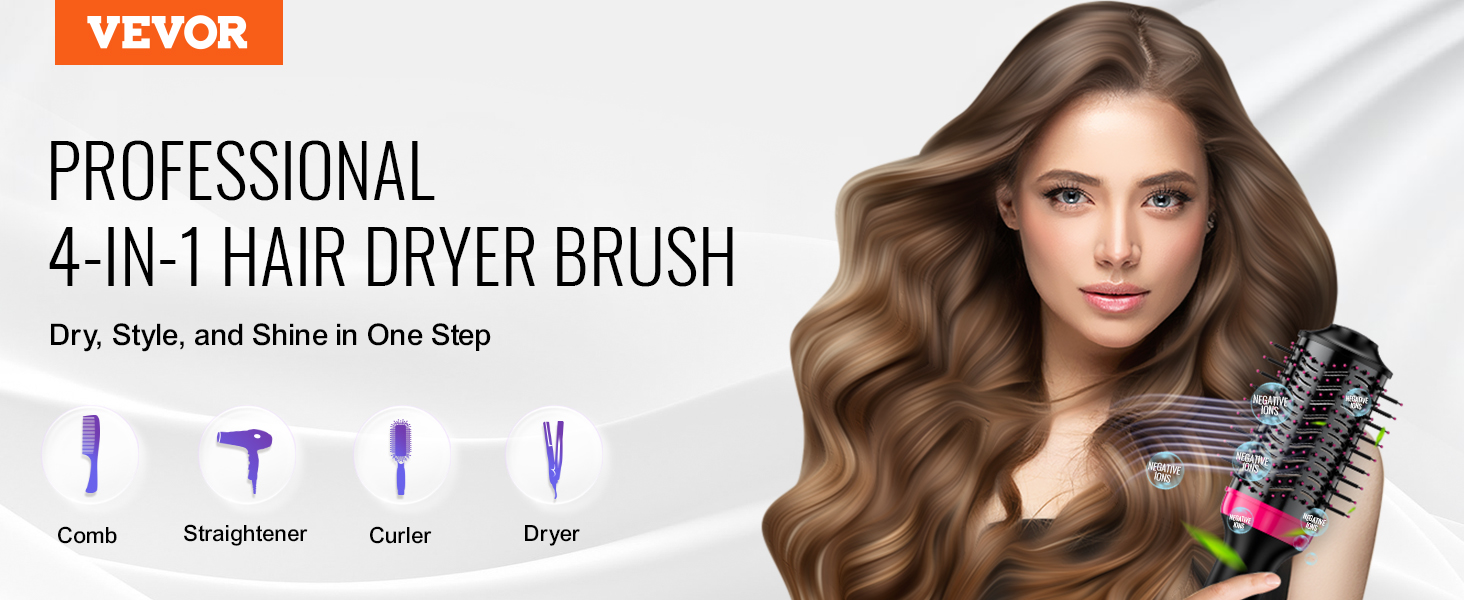 VEVOR kefa na sušenie vlasov 4 v 1: váš stylingový kúzelník! Bez námahy dosiahnete sušenie, kulmovanie, narovnávanie a zväčšovanie objemu, aby ste splnili všetky potreby účesu. Vďaka pokročilému keramickému povlaku a 30 W+ záporným iónom účinne znižuje tepelné poškodenie a zároveň uzamyká vlhkosť pre hladšie a zdravšie vlasy.