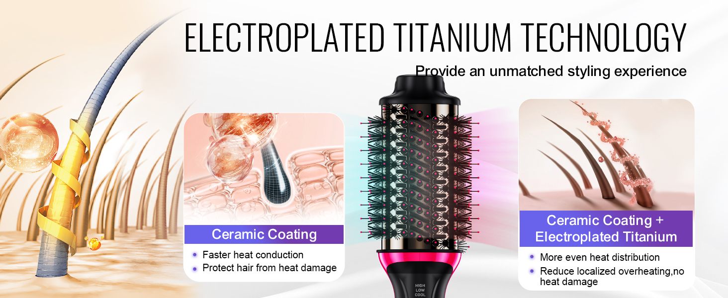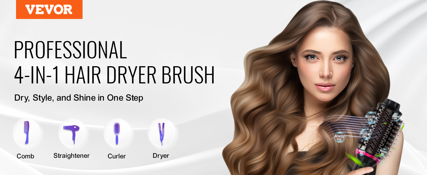 Pomocou fénovej kefy VEVOR 4 v 1 ľahko dosiahnete sušenie, kulmovanie, narovnávanie a zväčšovanie objemu, čím splníte všetky potreby účesu. Vďaka pokročilej titánovej technológii s galvanickým pokovovaním, keramickému povlaku a 30 W+ záporným iónom účinne znižuje poškodenie teplom a zároveň uzamyká vlhkosť pre hladšie a zdravšie vlasy.