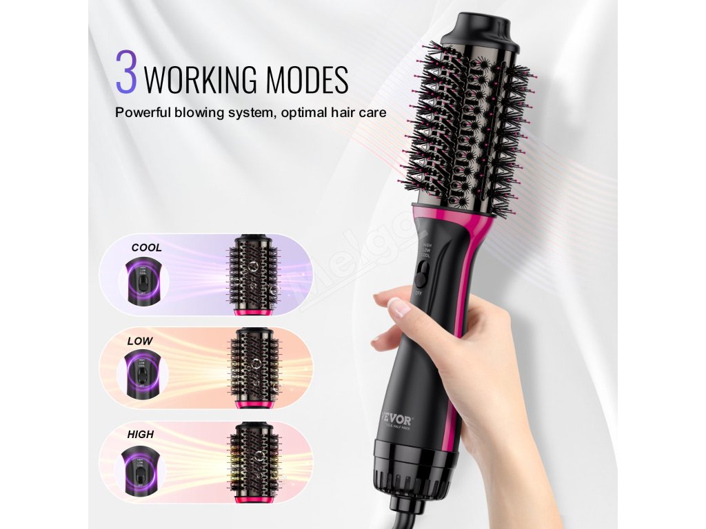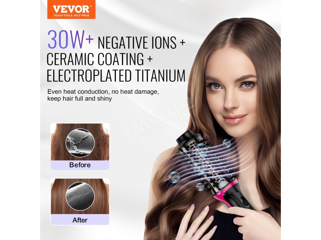 Pomocou fénovej kefy VEVOR 4 v 1 ľahko dosiahnete sušenie, kulmovanie, narovnávanie a zväčšovanie objemu, čím splníte všetky potreby účesu. Vďaka pokročilej titánovej technológii s galvanickým pokovovaním, keramickému povlaku a 30 W+ záporným iónom účinne znižuje poškodenie teplom a zároveň uzamyká vlhkosť pre hladšie a zdravšie vlasy.