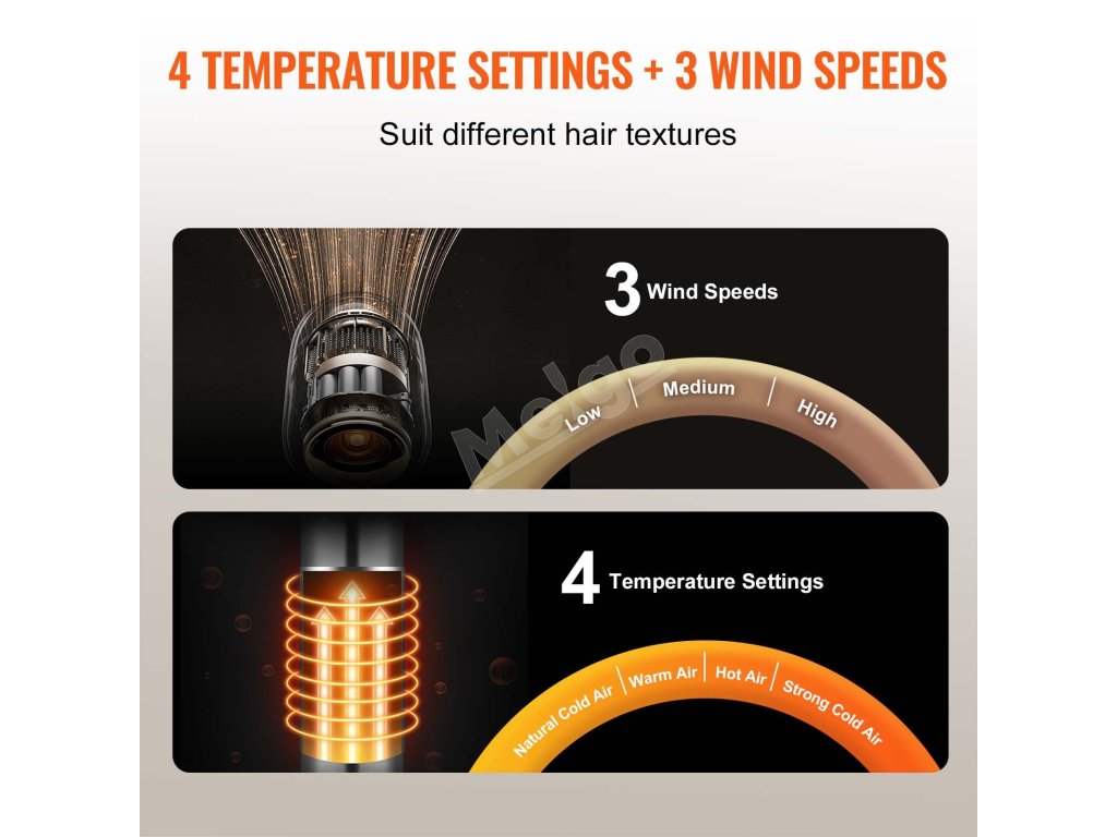 Náš teplovzdušný stylingový strojček ponúka viacero nastavení teploty a režimu, čo umožňuje rýchle sušenie mokrých vlasov. Zabudovaný systém vyživovania zápornými iónmi a regulácie teploty zároveň vyživuje a vysušuje vlasy, čím znižuje ich poškodenie teplom.