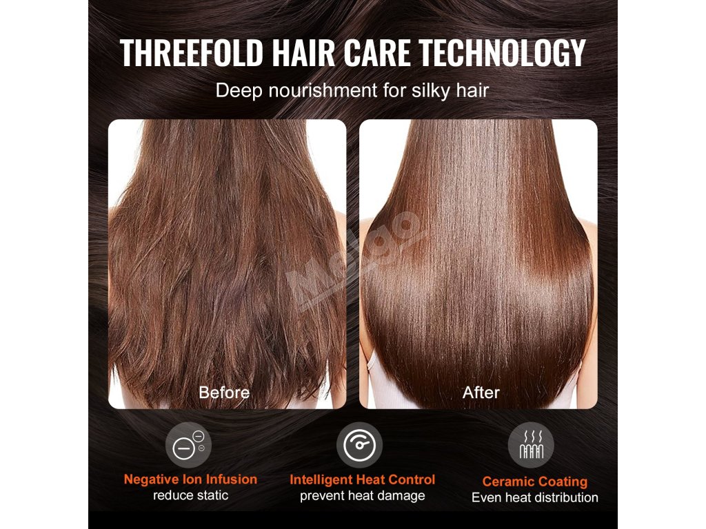 Pomocou technológie záporných iónov a systému regulácie teploty vytvára naša kefa na sušenie vlasov ochrannú bariéru, ktorá znižuje poškodenie teplom. Keramický povlak zabezpečuje rovnomerné rozloženie tepla, vďaka čomu dosiahnete výsledky ako v salóne bez obáv z prehriatia alebo poškodenia vlasov.