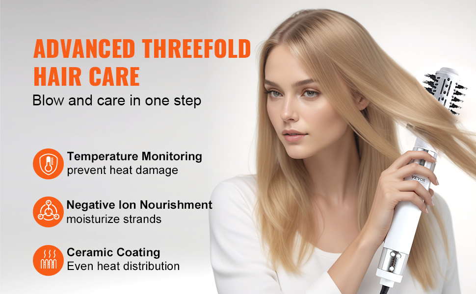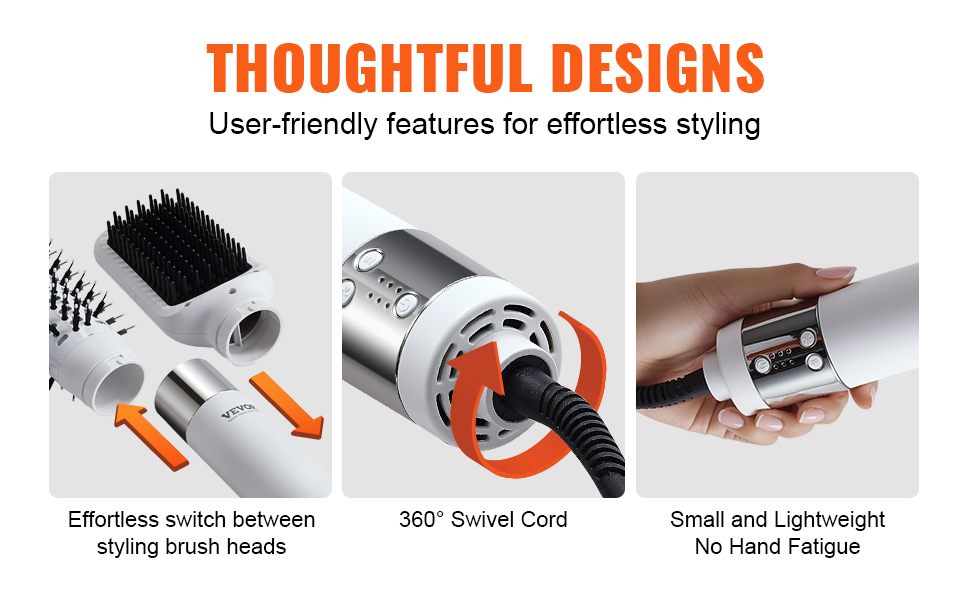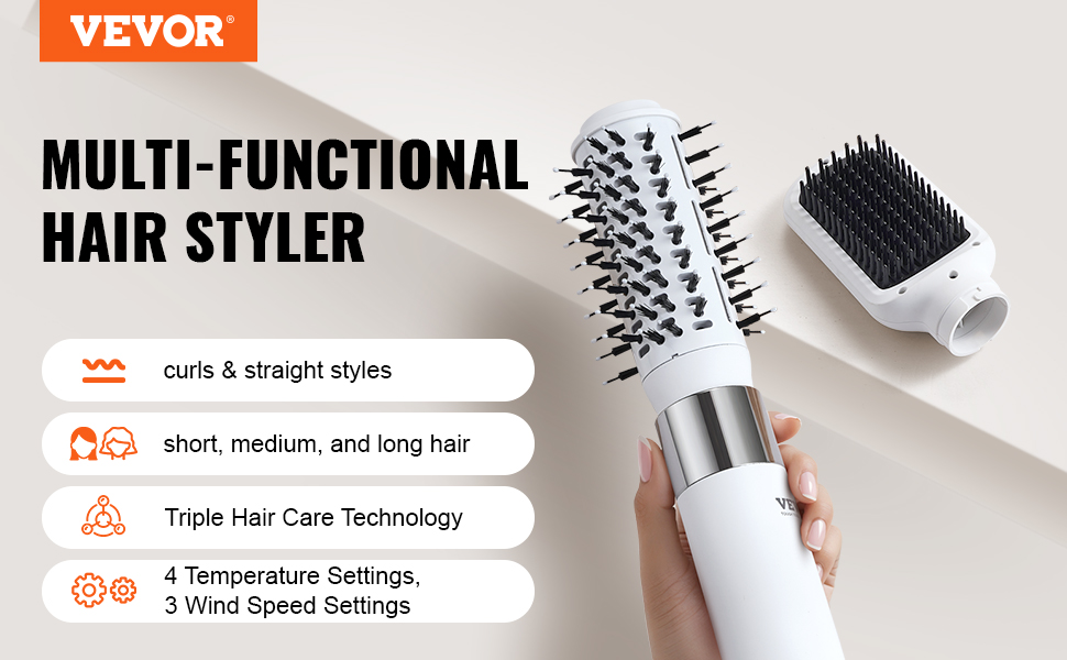 Kefa VEVOR na sušenie vlasov obsahuje 2 kefové hlavy, vďaka čomu je nevyhnutná na rýchle vytváranie krásnych účesov. Vďaka rôznym nástavcom určeným pre rôzne textúry vlasov a potreby stylingu môžete bez námahy dosiahnuť rozmanité a moderné účesy.