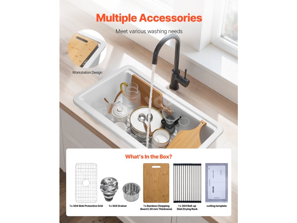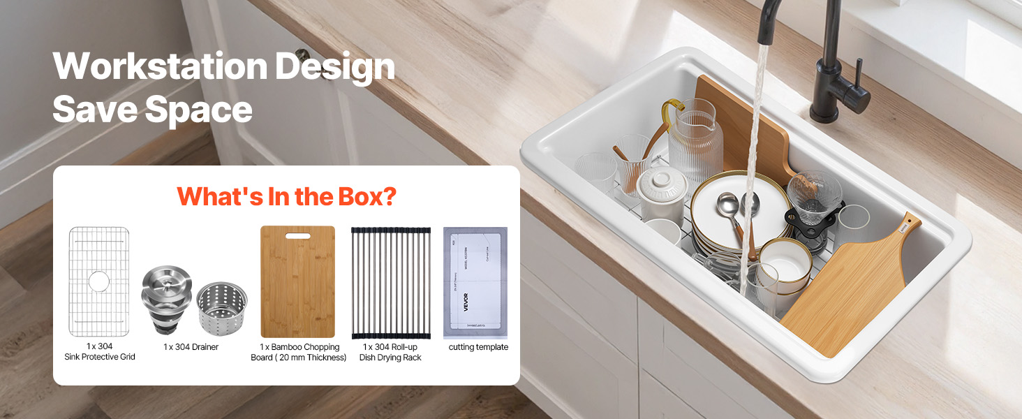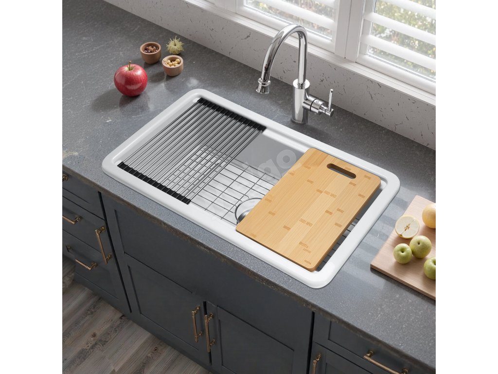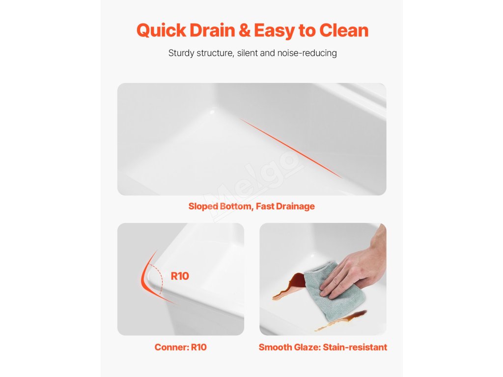 Vďaka 9-palcovej hĺbke umývadla ponúka tento biely pracovný drez veľkú kapacitu. Ľahko sa doň zmestia šálky, panvice a plechy na pečenie, čím spĺňa rôzne potreby čistenia a zároveň umožňuje jednoduché čistenie veľkého kuchynského riadu.