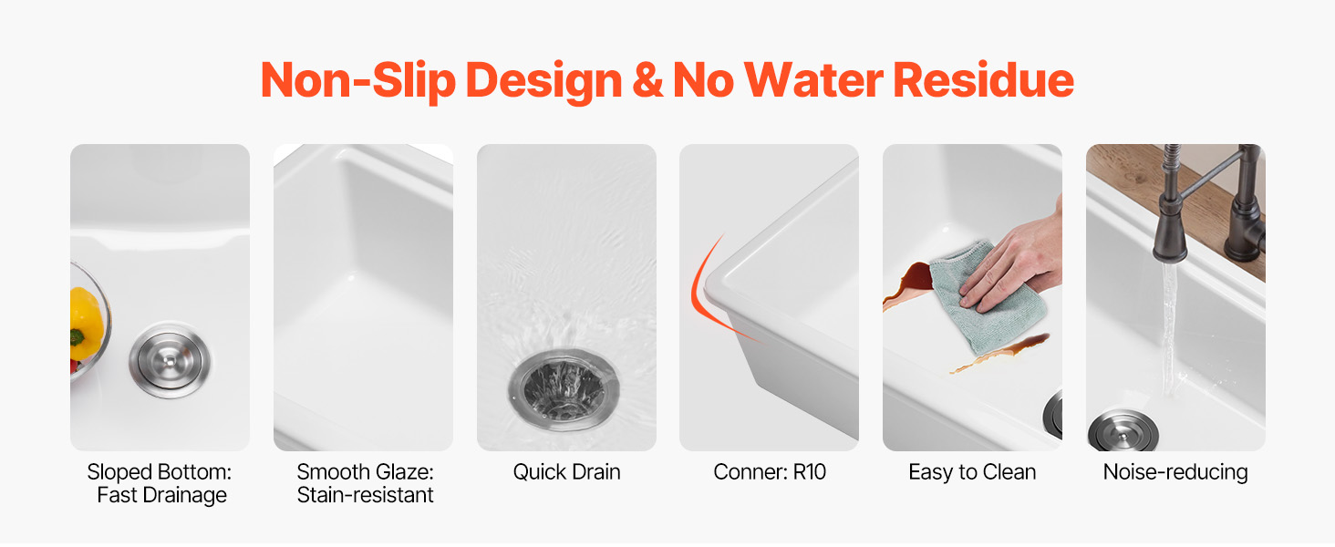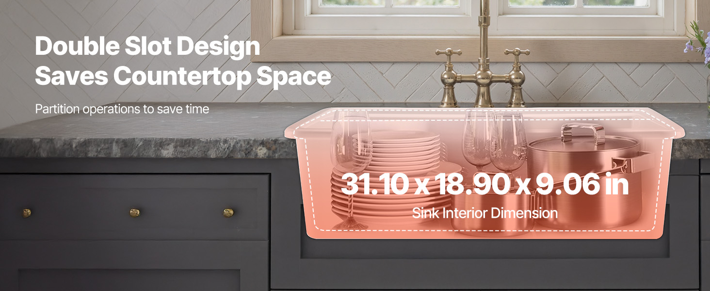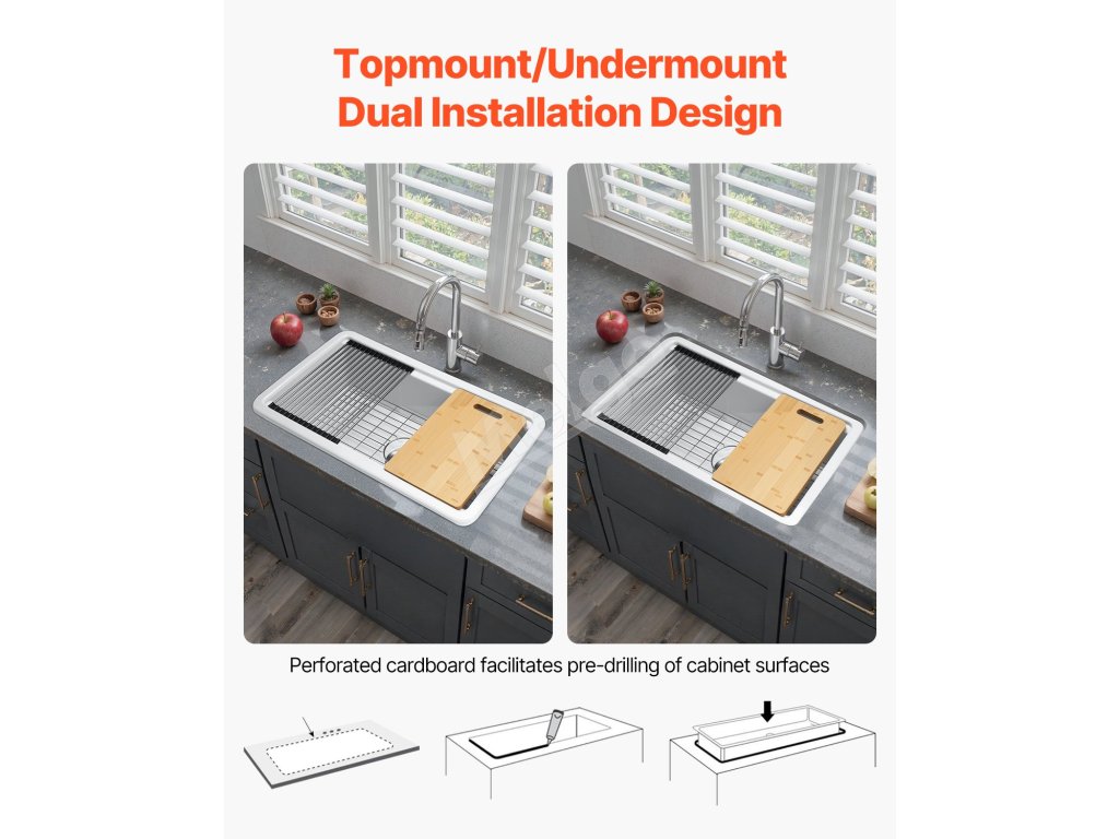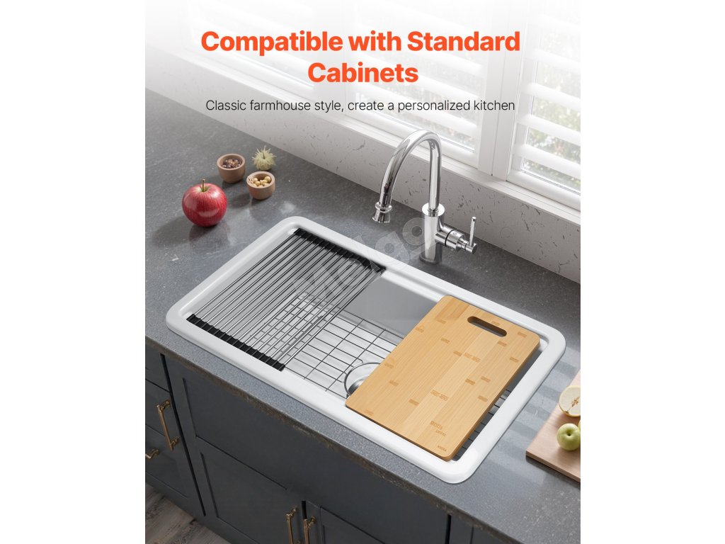 Vďaka 9-palcovej hĺbke umývadla ponúka tento biely pracovný drez veľkú kapacitu. Ľahko sa doň zmestia šálky, panvice a plechy na pečenie, čím spĺňa rôzne potreby čistenia a zároveň umožňuje jednoduché čistenie veľkého kuchynského riadu.