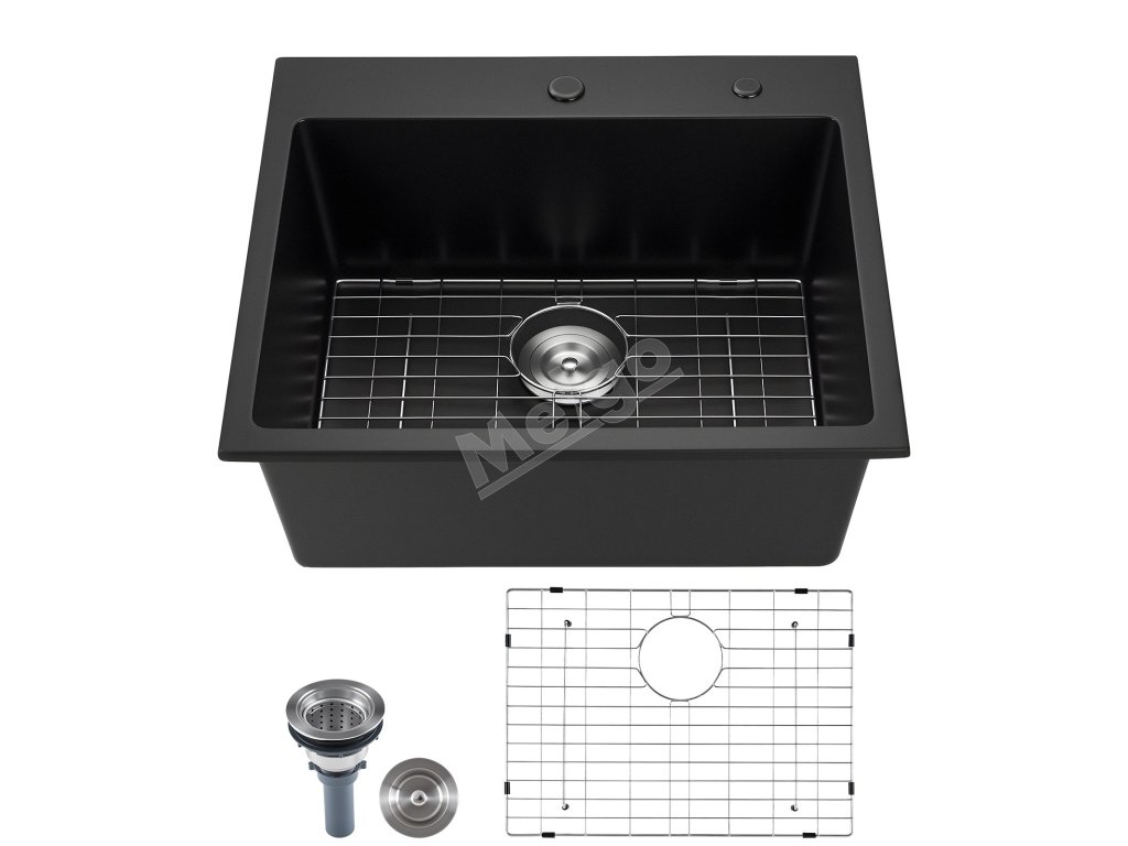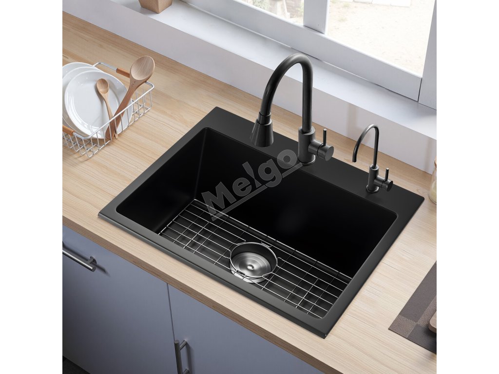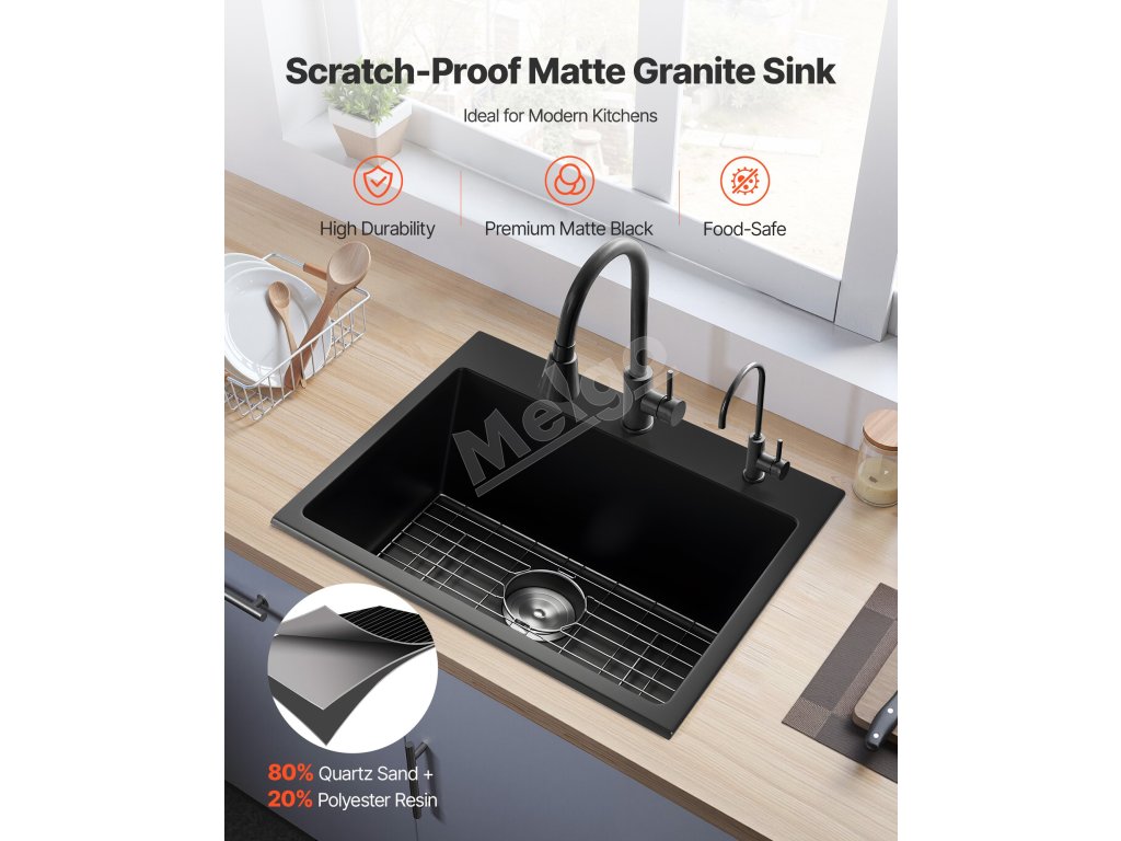 Náš granitový kuchynský drez má hladký matný čierny povrch s jemným luxusom, ktorý s rafinovanou eleganciou dopĺňa moderné kuchyne a elegantné bary. Praktický a ľahko udržiavateľný kuchynský drez s hornou montážou povýši každodenné kuchynské úlohy na príjemný zážitok.
