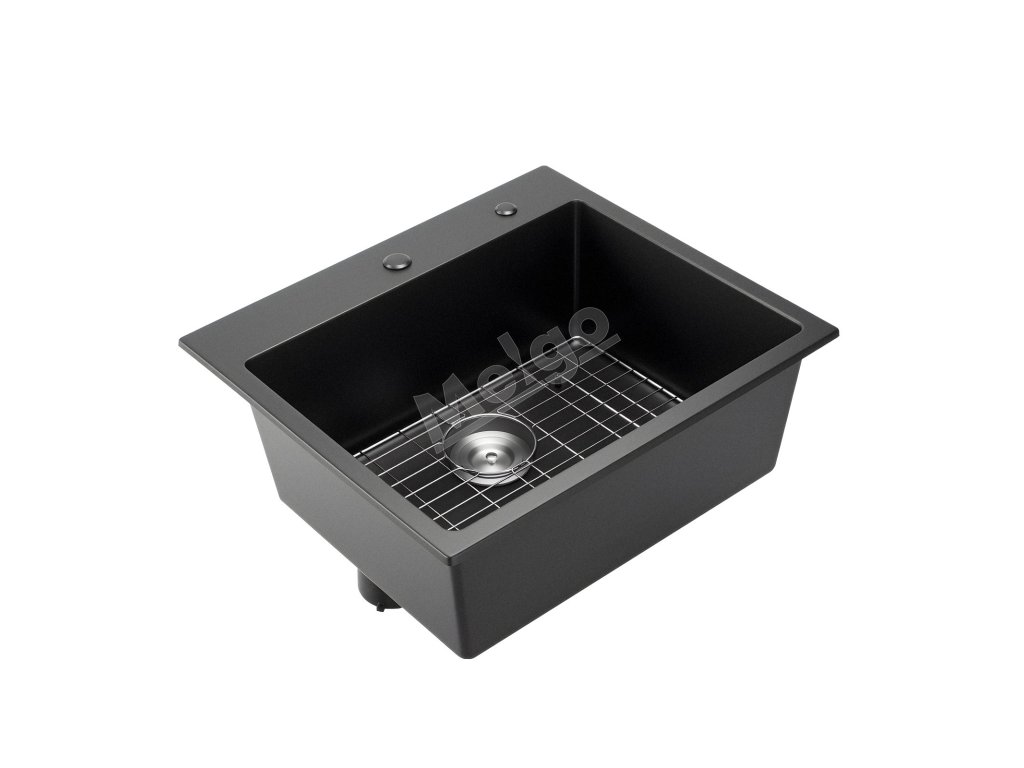 Kuchynský granitový drez 63 cm, vrchná montáž, jednokomorový, čierny