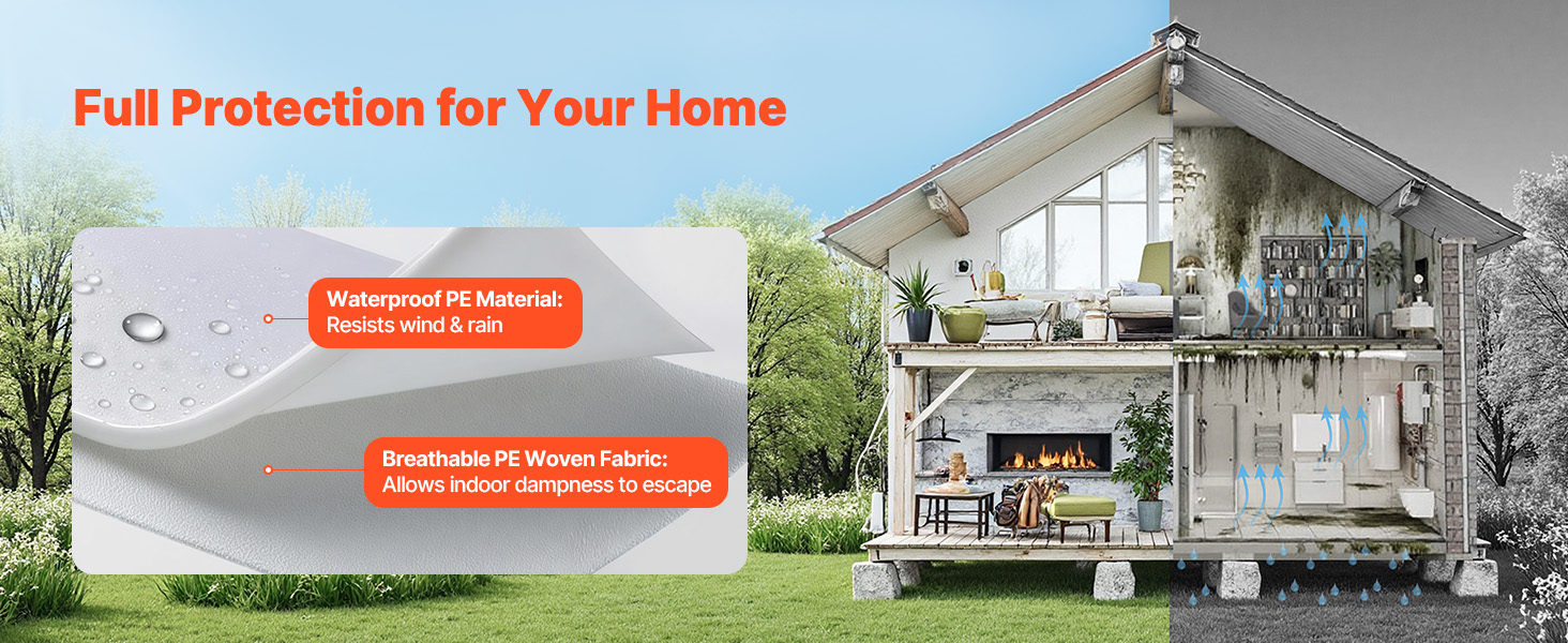 Naša domová fólia blokuje dážď a vlhkosť ako profesionál, zatiaľ čo drobné póry prepúšťajú vodnú paru. Vaše steny zostanú suché, vaša konštrukcia pevná - už žiadne premočené prekvapenia.