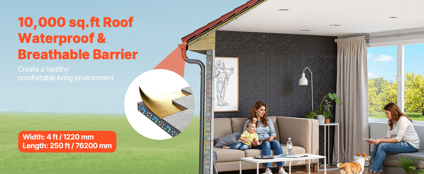 4 x 250 ft strešná parozábrana - vodotesná a priedušná membrána