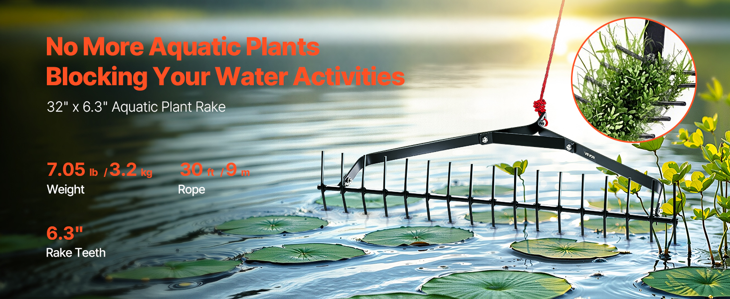 Hrable na vodné rastliny 32 in, 6.3 in obojstranné, 30 ft lano