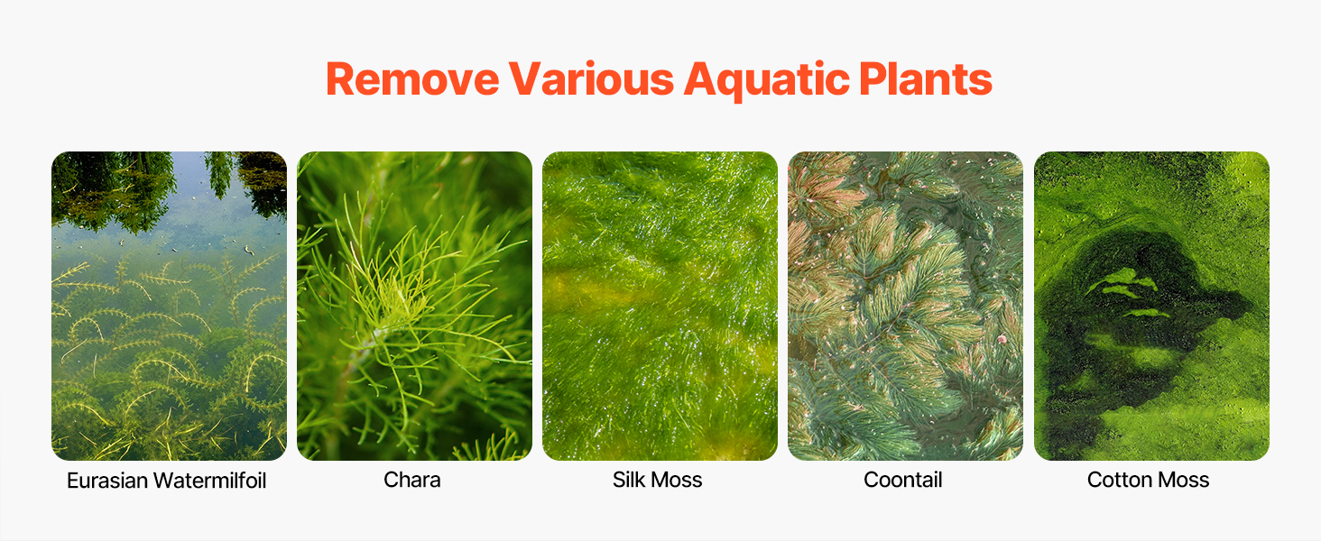 Táto vodná fréza na burinu odstraňuje vodnú riasu, cháru, hodvábny mach, mihuľu a bavlníkový mach. Je ideálny pre domáce rybníky a komerčné vodné hospodárstvo, udržiava vodu čistú a priezračnú.