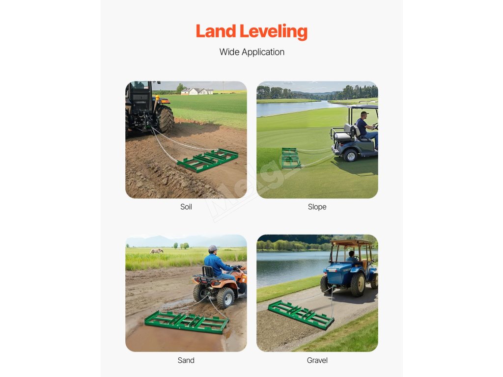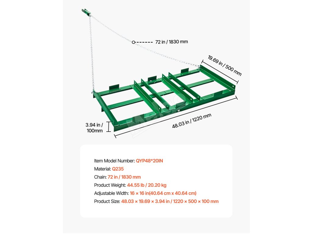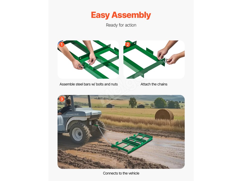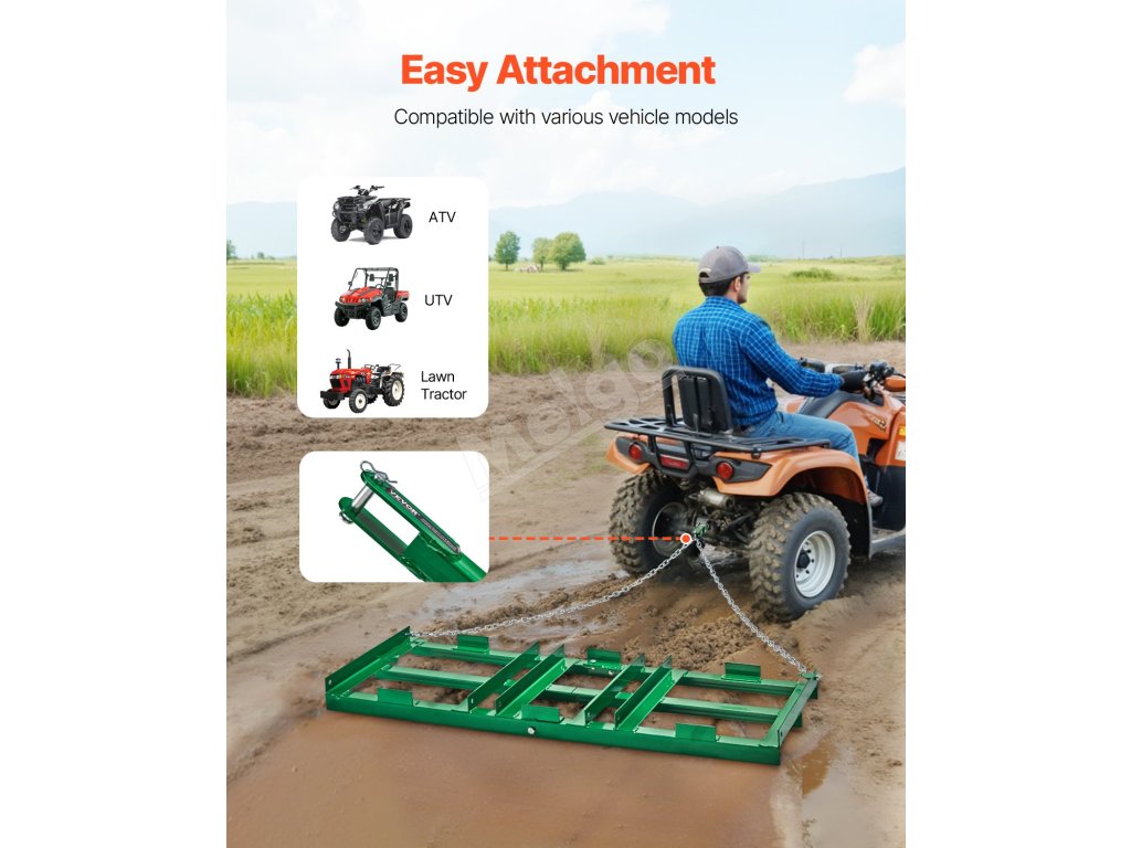 Ťahané hrable 4 ft, nastaviteľné tyče, 72 in reťaz pre atv, traktor