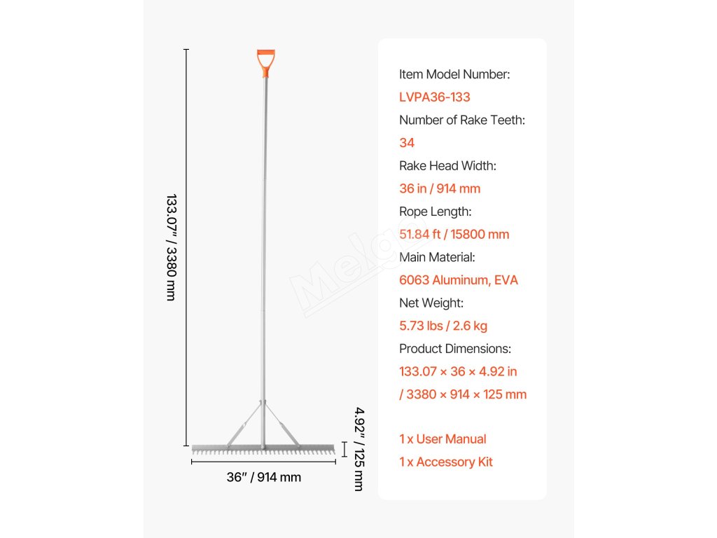 | Šírka hlavy hrablí | 36 palcov/914 mm |