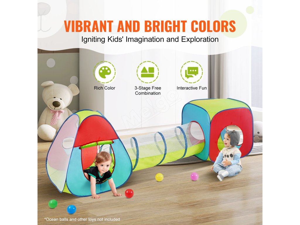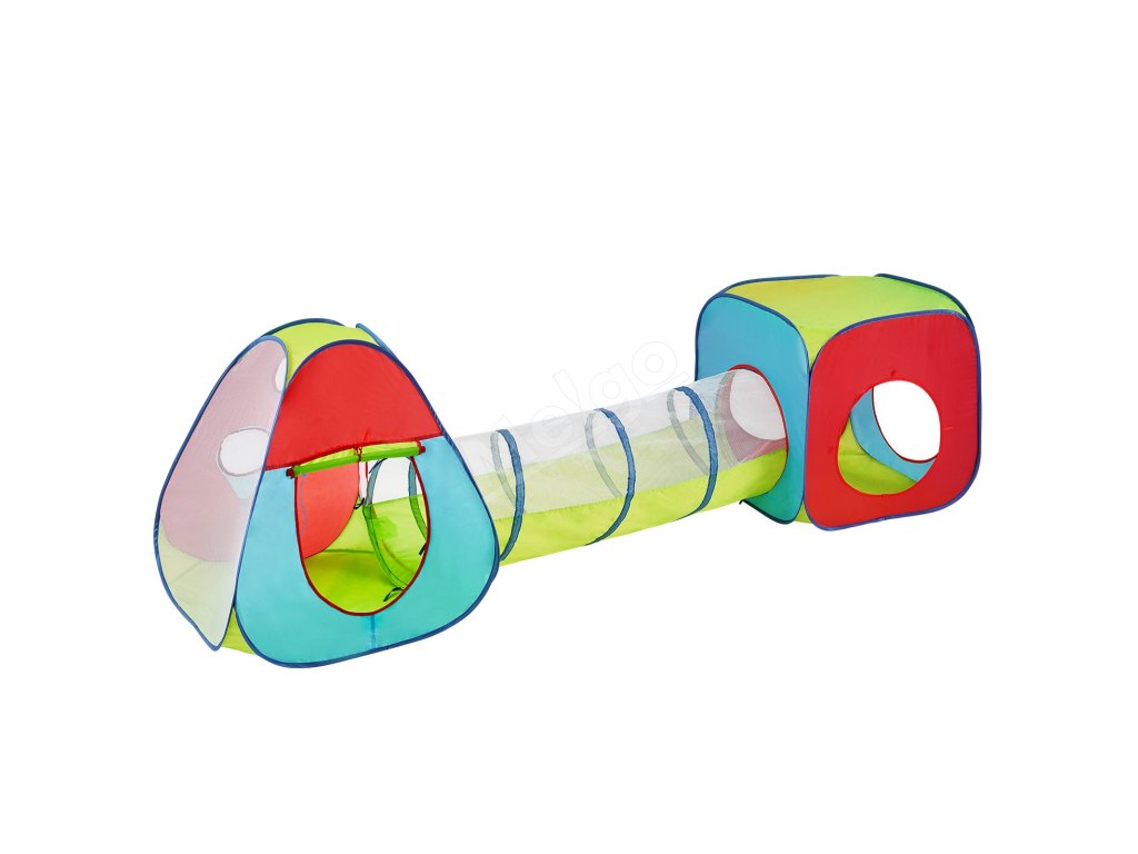 Detský 3 v 1 stan s tunelom, pop-up, s taškou, červeno-žlto-modrý