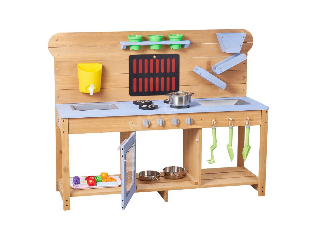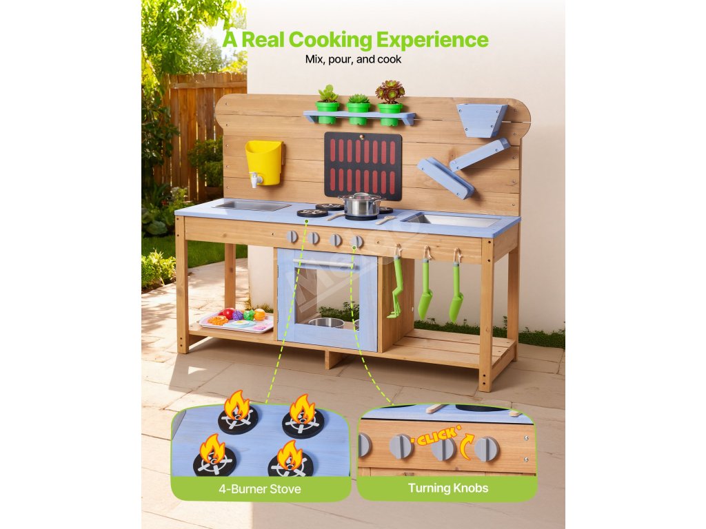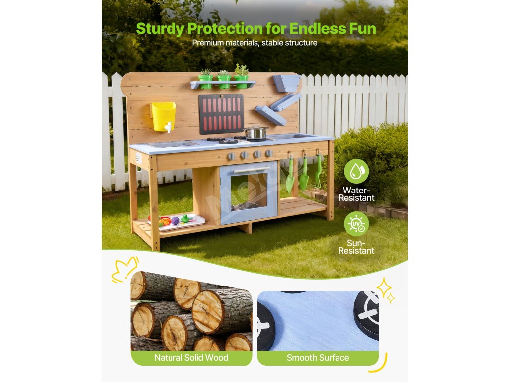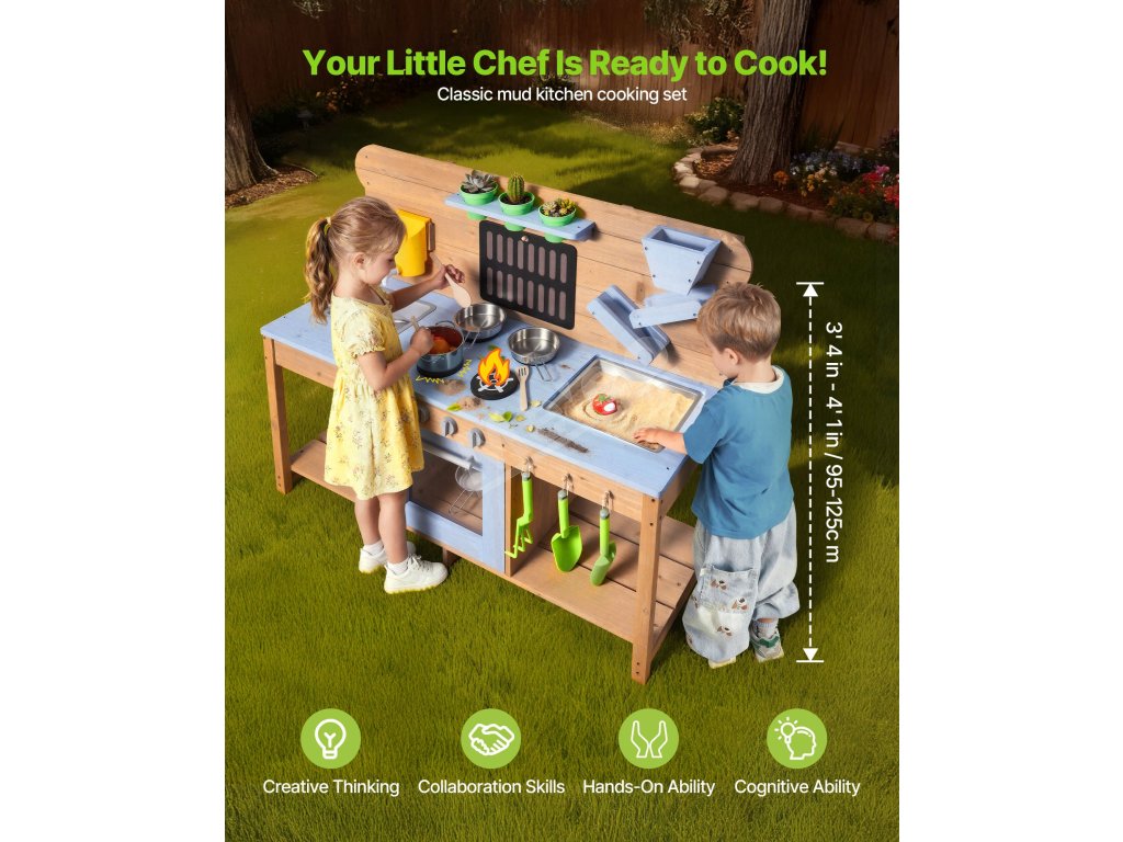 Táto kuchynka pre batoľatá, navrhnutá pre vonkajšie hry s blatom, vodou a prírodou, umožňuje deťom simulovať varenie s blatom ako skutoční kuchári!