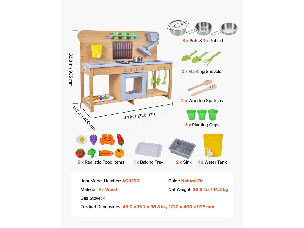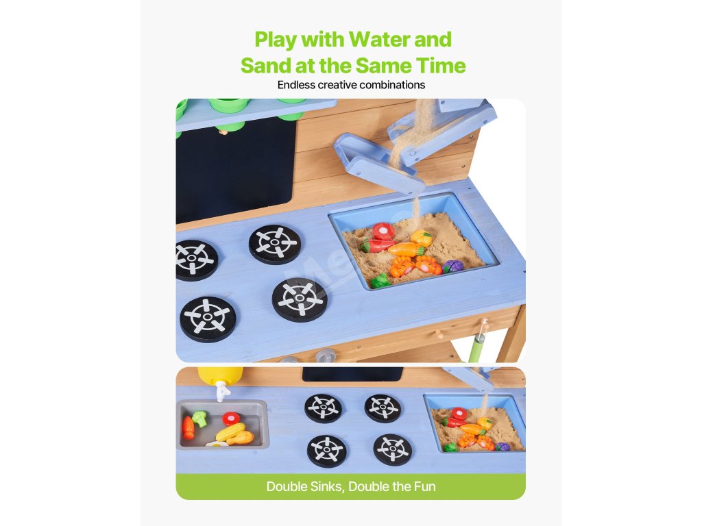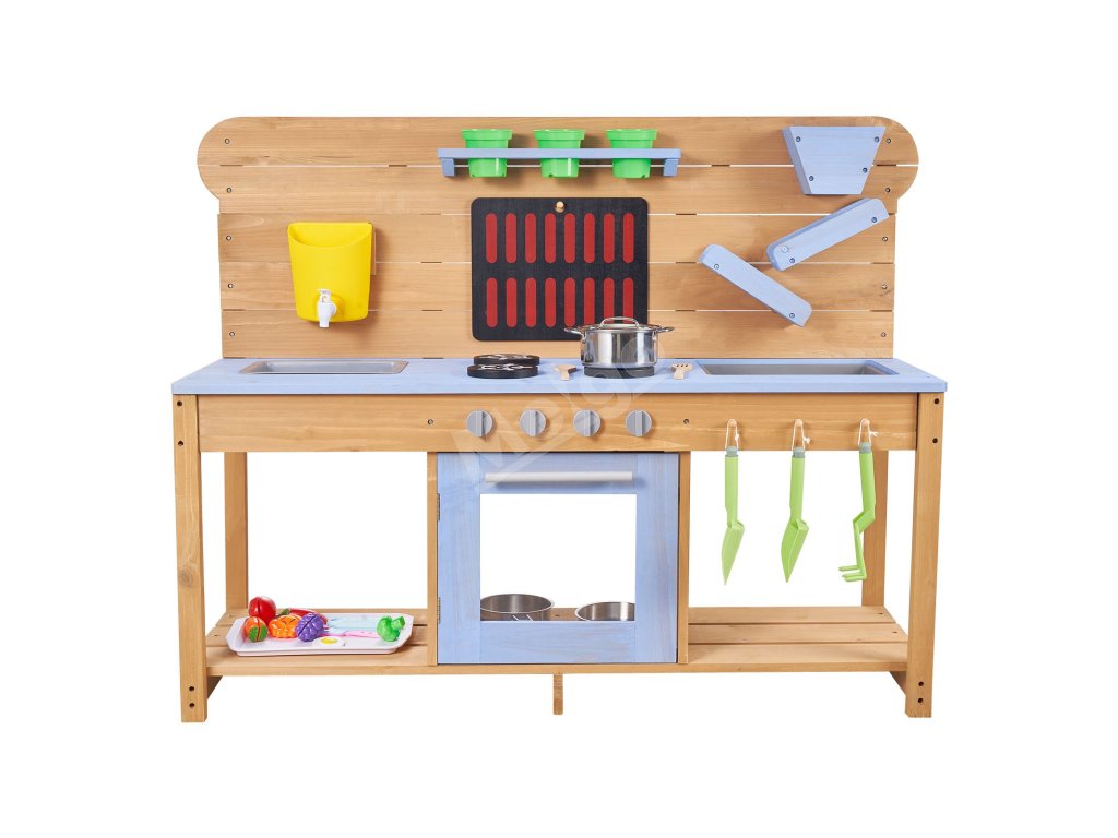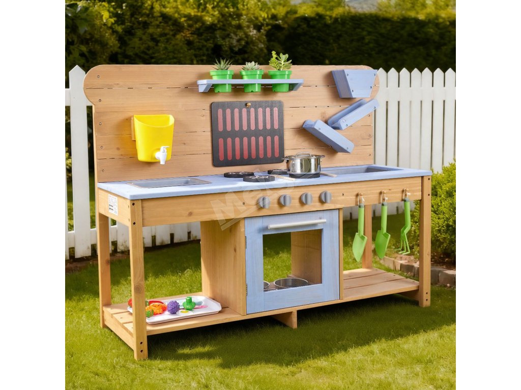 Táto kuchynka pre batoľatá, navrhnutá pre vonkajšie hry s blatom, vodou a prírodou, umožňuje deťom simulovať varenie s blatom ako skutoční kuchári!