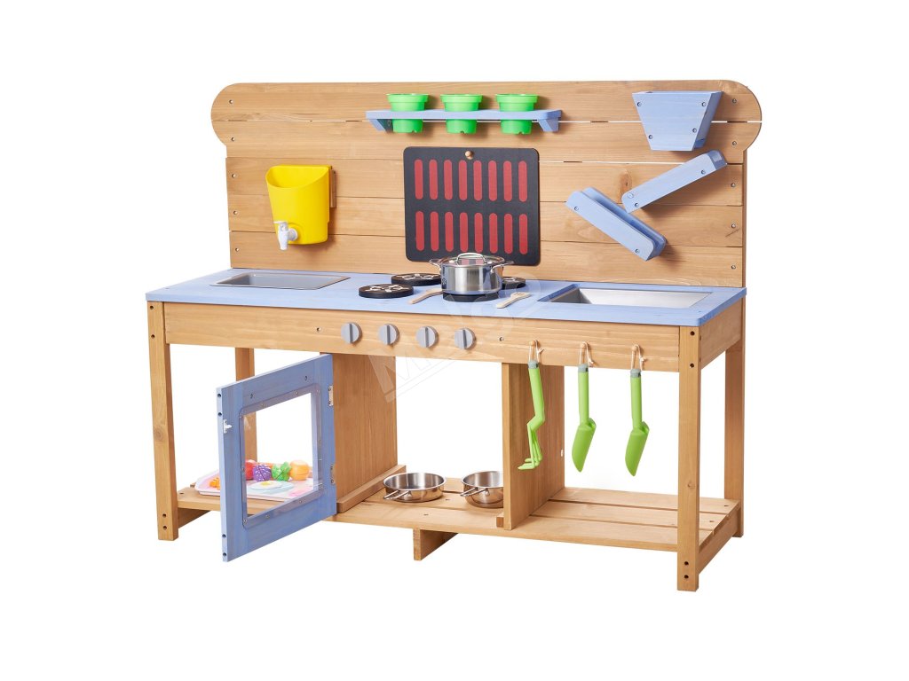 Detská blatová kuchynka drevená so sporákom, dvojitý drez, háčiky