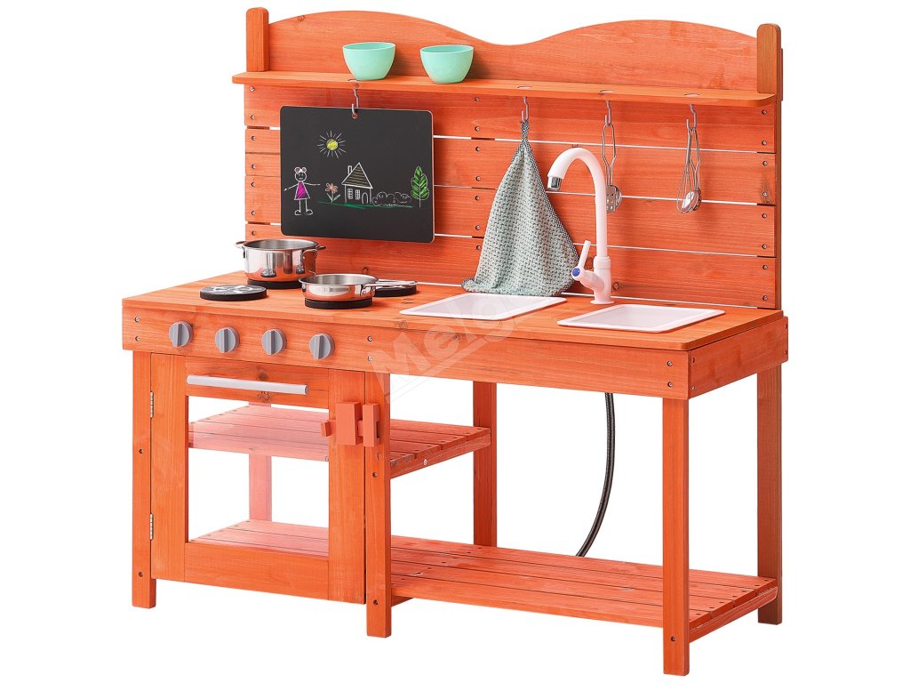 Naša drevená vonkajšia kuchynka zahŕňa zábavné činnosti, ako je umývanie, varenie a pečenie. Magnetická tabuľa umožňuje čmáranie a písanie, vďaka čomu môžu deti rozvinúť svoju kreativitu.