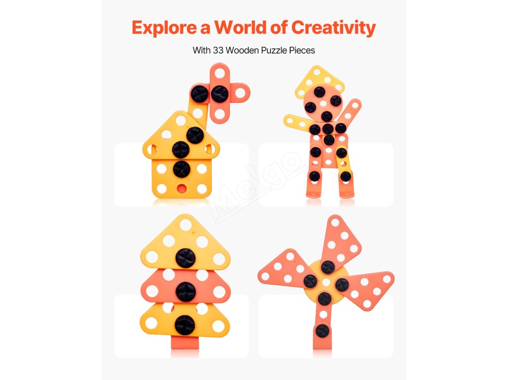 Tento detský stolík s náradím obsahuje farebné puzzle bloky na nekonečnú tvorivú hru. Deti môžu priraďovať tvary, zlepšovať jemnú motoriku a posilňovať logické myslenie - budovať svet predstavivosti, jeden blok za druhým!
