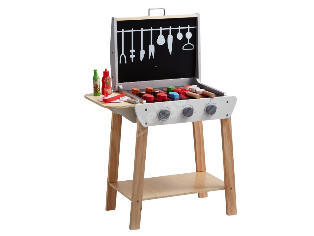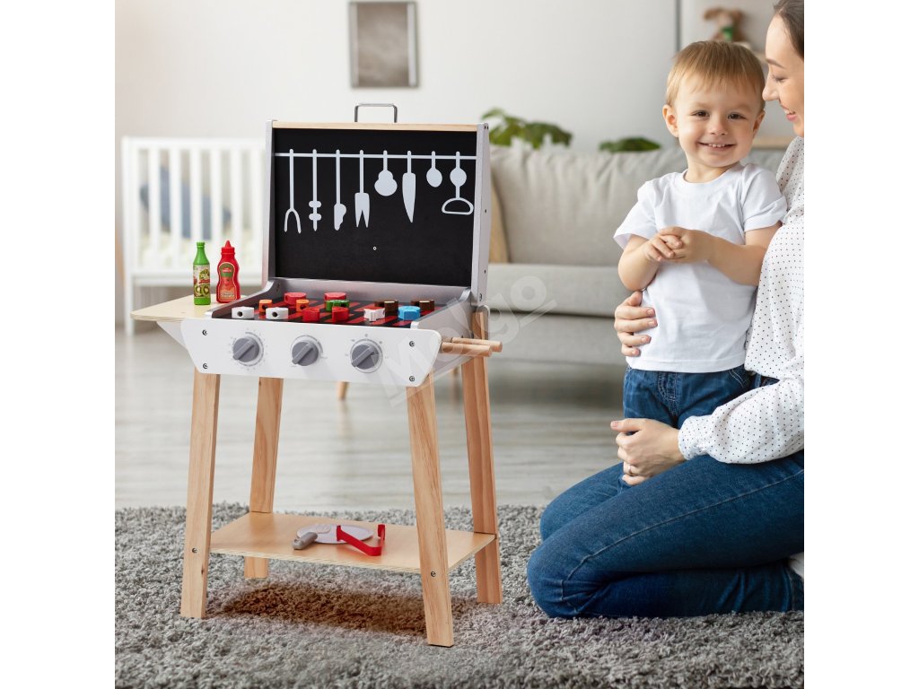 Drevený detský gril na hranie s 21 dielmi a príslušenstvom 3+