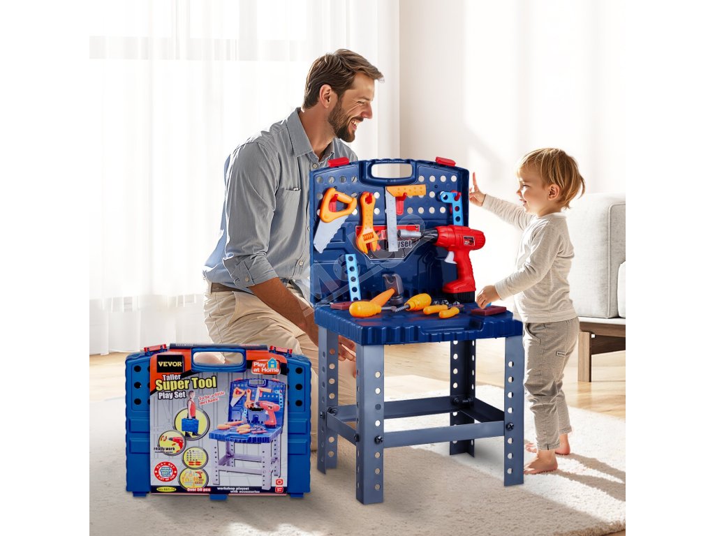 Tento detský pracovný stôl sa dodáva so základnými nástrojmi, ako je kľúč, píla, skrutkovač a ďalšie! Deti môžu objavovať svet náradia, zlepšovať koordináciu ruka-oko a zároveň sa zabávať a objavovať radosť z remeselnej práce.