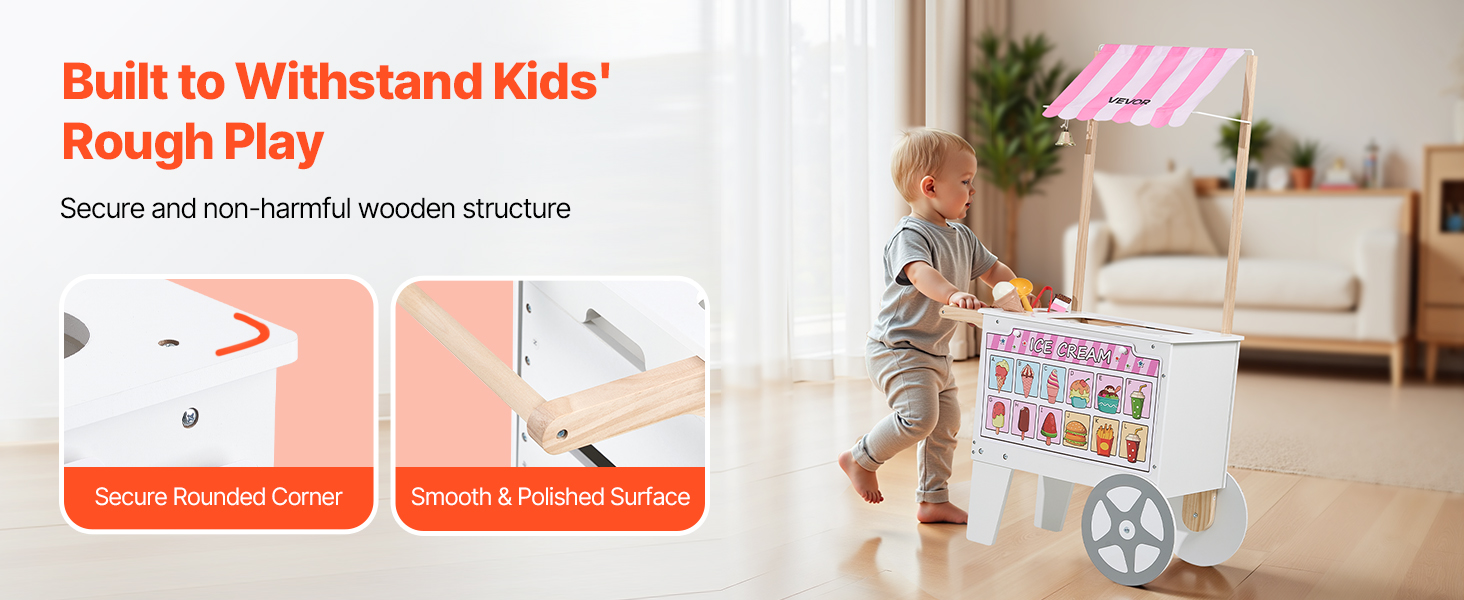 Táto hračka do zmrzlinárne, vyrobená z prvotriedneho dreva, ktoré je vhodné pre deti, je robustná a bezpečná pre nekonečnú zábavu. Hladké hrany a leštená povrchová úprava zaručujú, že malé ručičky zostanú počas hry v bezpečí. Príslušenstvo má skvelé rozmery, aby sa zabránilo nebezpečenstvu zadusenia.