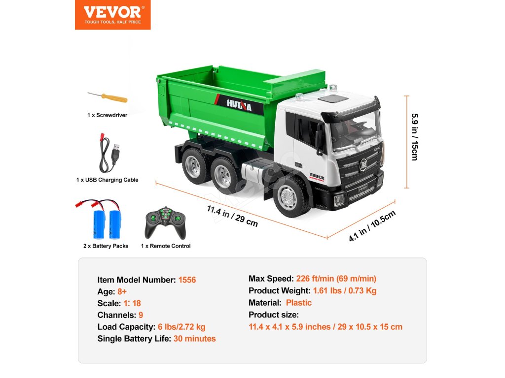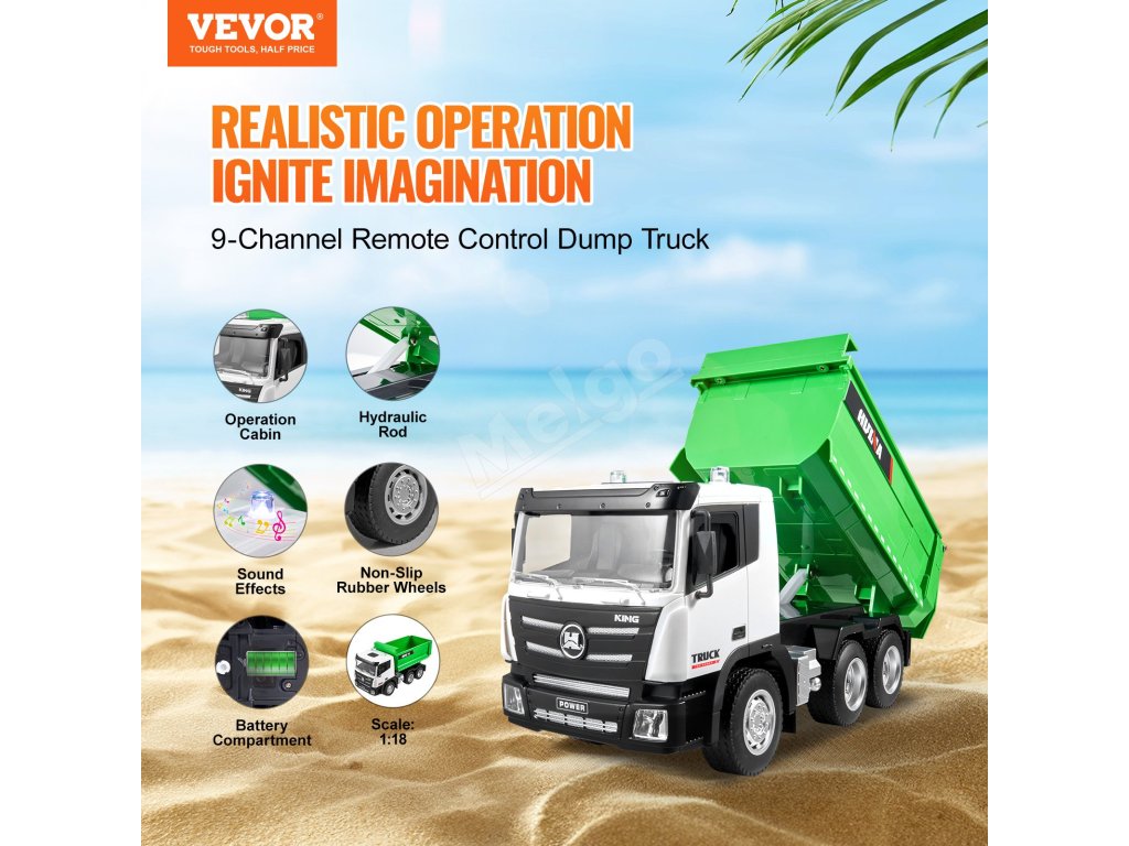 Diaľkovo ovládaná sklápacia stavebná hračka nákladné vozidlo 1:18, 9CH