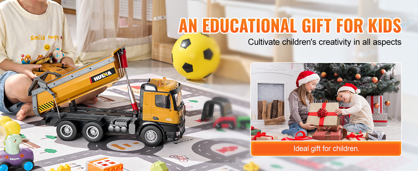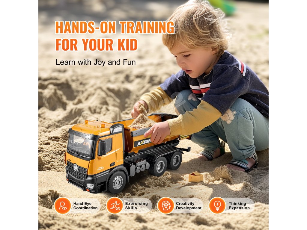 Deti sa môžu ponoriť do simulácie staveniska s touto RC hračkou sklápacieho auta vyrobenou z vysokokvalitných materiálov. Zvukové a svetelné efekty vytvárajú realistický zážitok, ukazujú, čo robí skutočné sklápacie auto, a prispievajú k interaktívnej zábave.